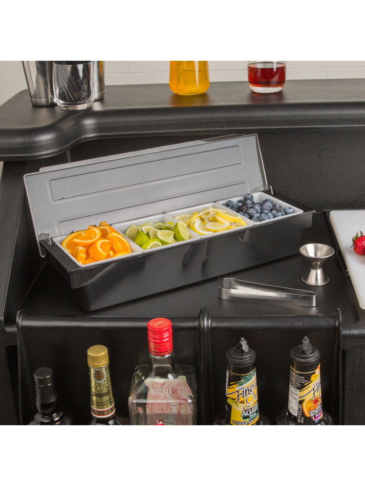Контейнер барный, 4 лотка, 49х16х9 см, пластик, Henry. (12-114)