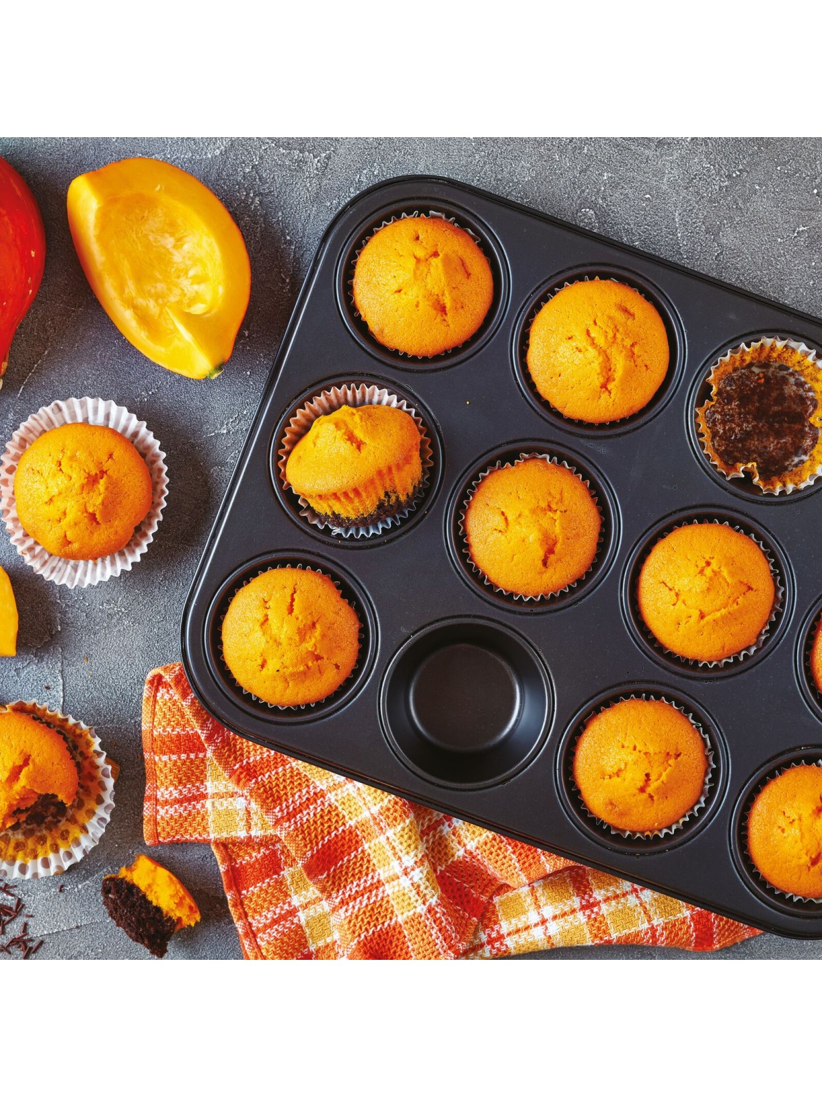 Кондитерская форма для выпечки маффинов, 31х24 см, 12 ячеек 6, 8х1 см, с антипригарным покрытием, Paderno. (47748-35)