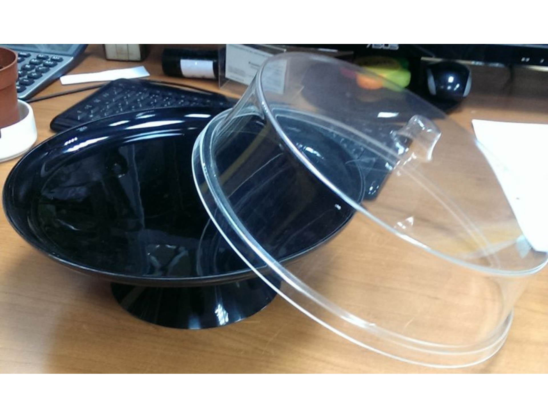 Подставка для торта, D-26 см с прозрачной клошей, черная, пластик, Carlisle. (2560)