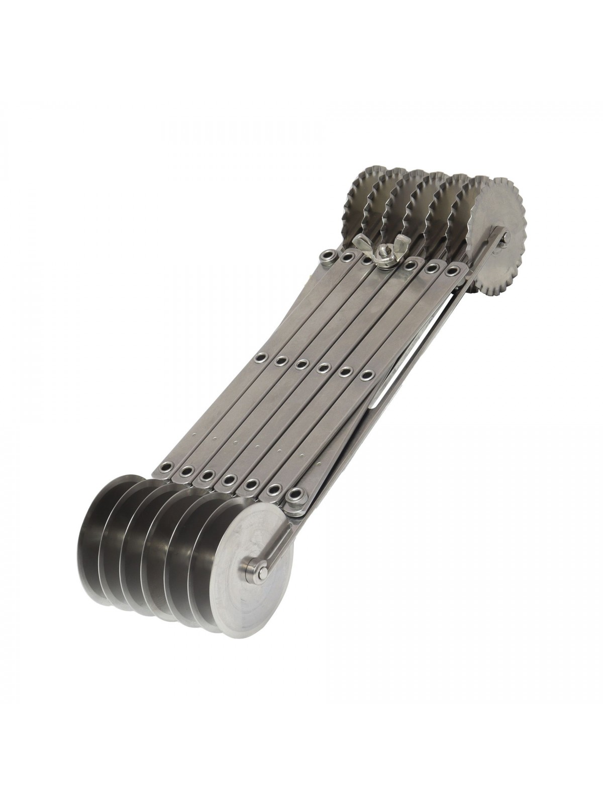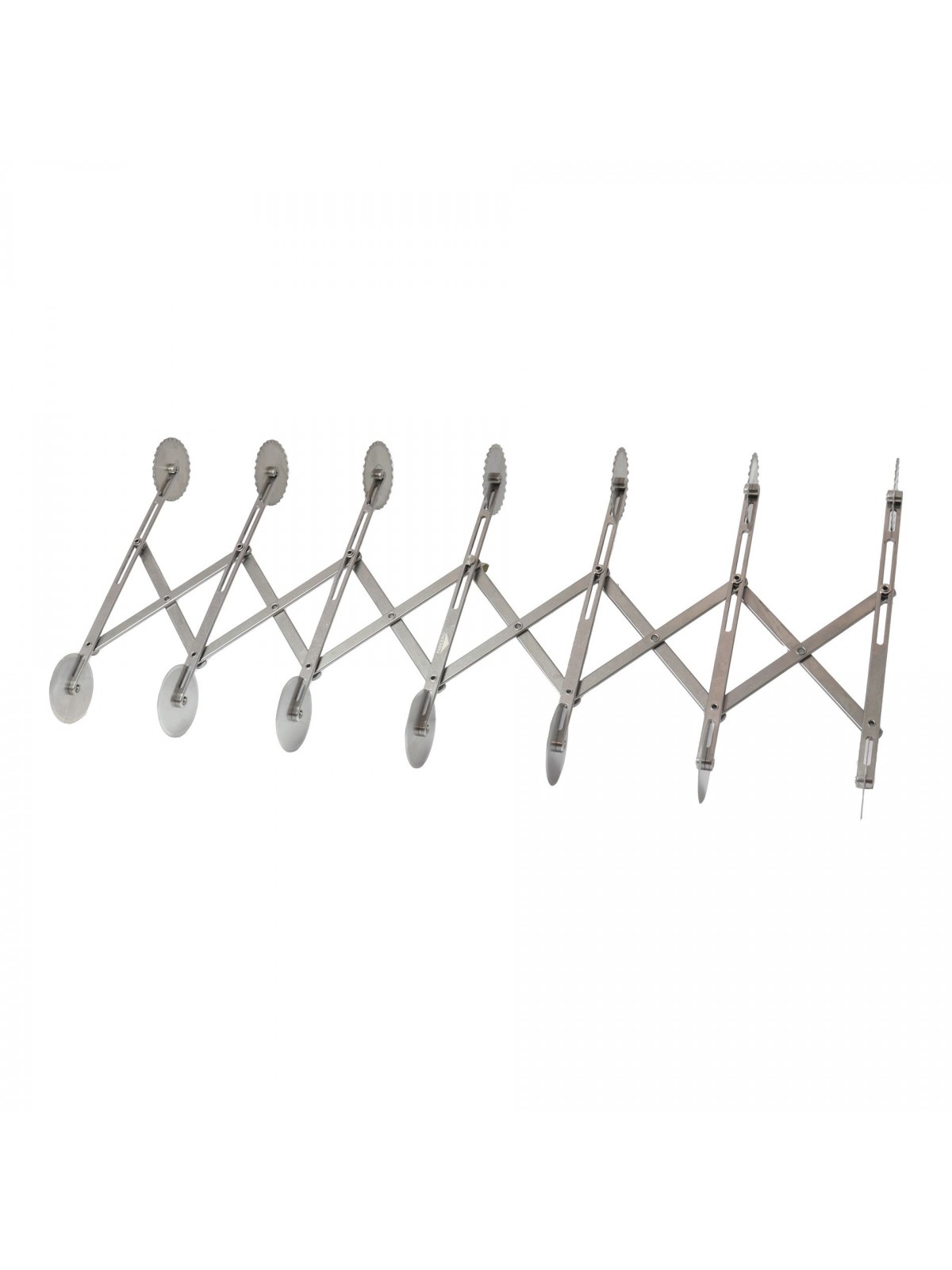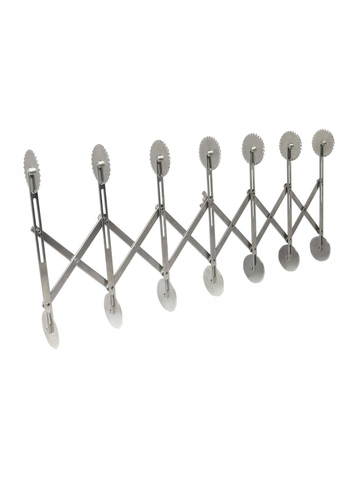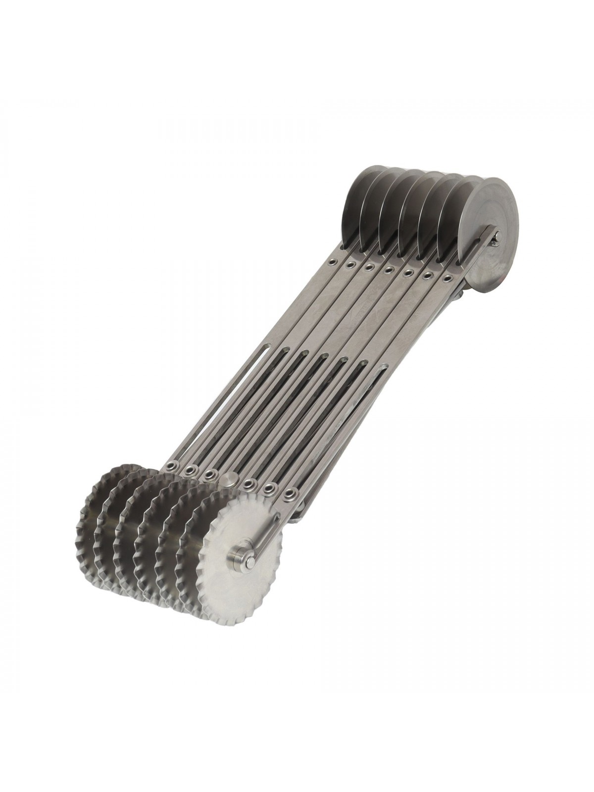 Нож роликовый для резки теста, раздвижной, двухсторонний (ровный/волнистый), по 7 роликов D-5, 5 см с каждой стороны, нерж.сталь, Paderno. (47822-07) (47822-07)