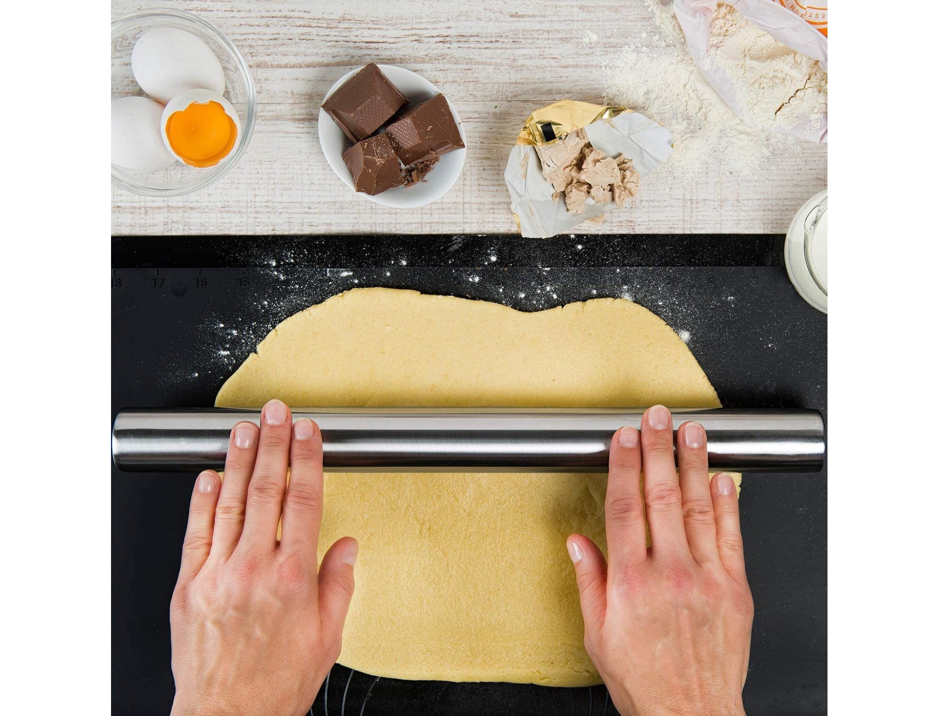Скалка для теста без ручек, D-5 cм, L-50 см, нерж.сталь, Paderno. (47034-50)