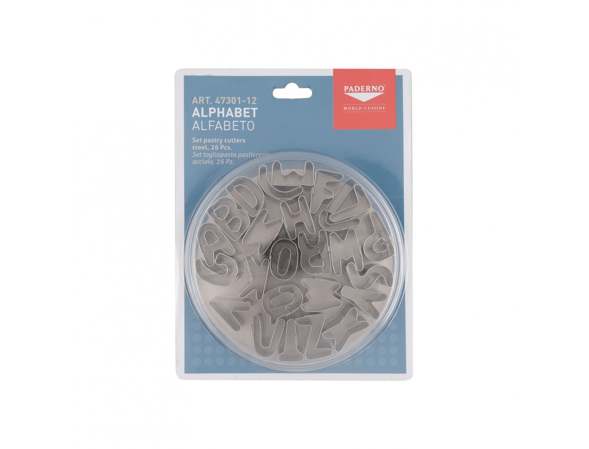 Набор вырубок форм для приготовления пряников и печенья, Английский алфавит, 2.5 см, 26 штук, нержавеющая сталь, Paderno. (47301-12)