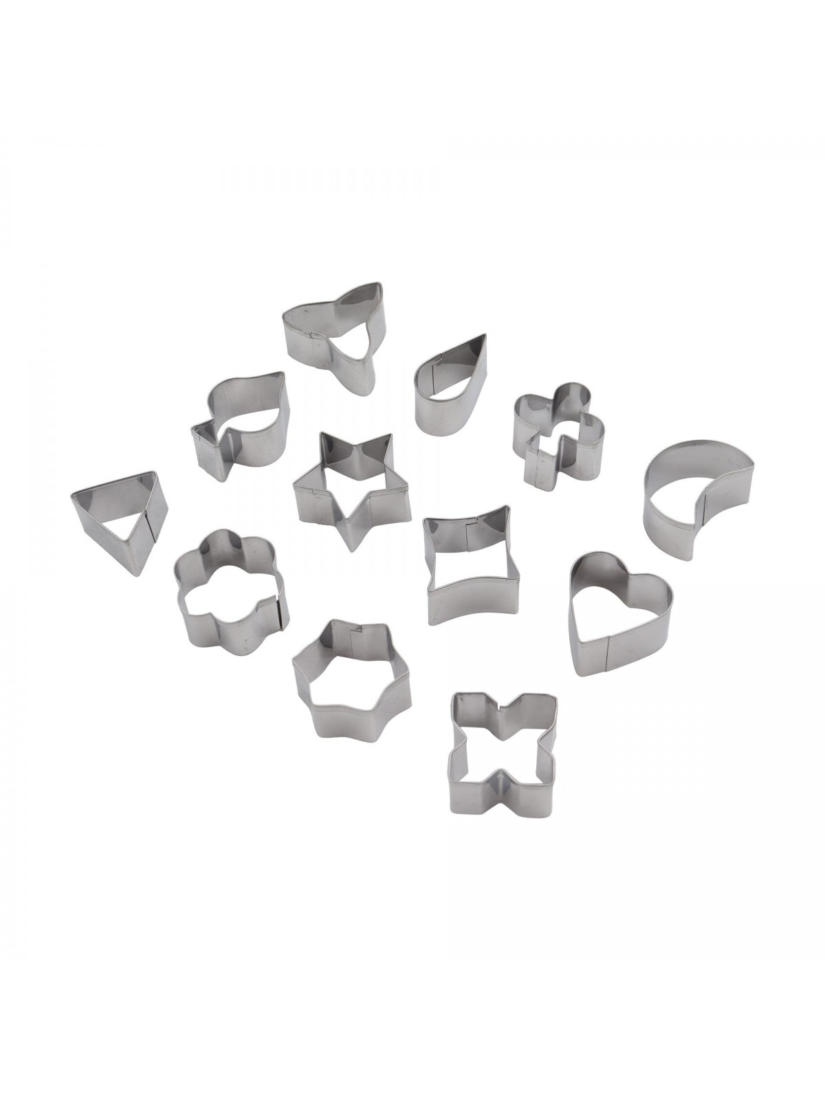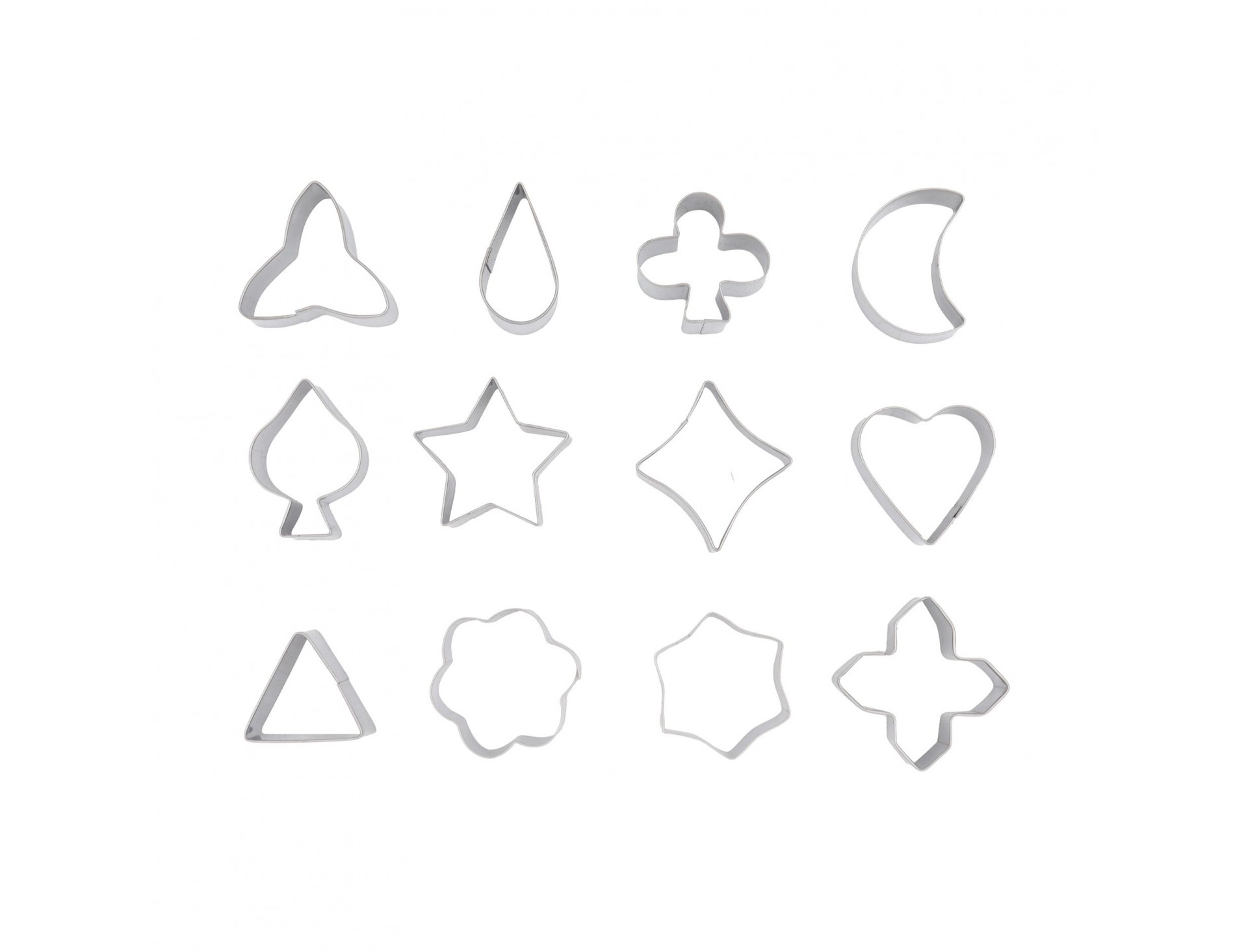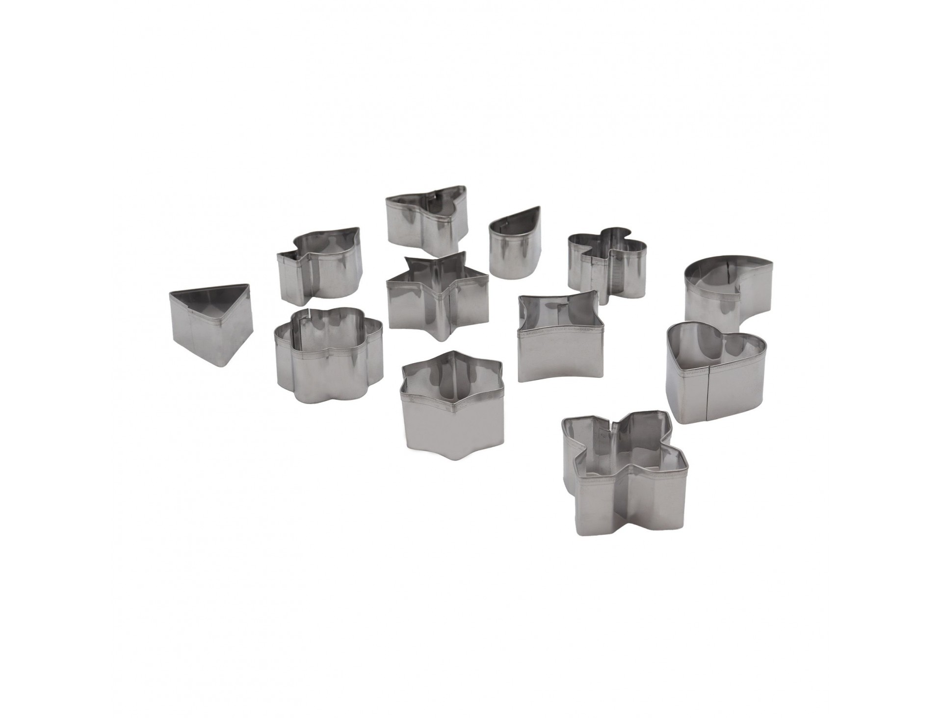 Набор вырубок форм для приготовления пряников и печенья, Фигуры, 3-4 см, 12 штук, нержавеющая сталь, Paderno. (47304-12)