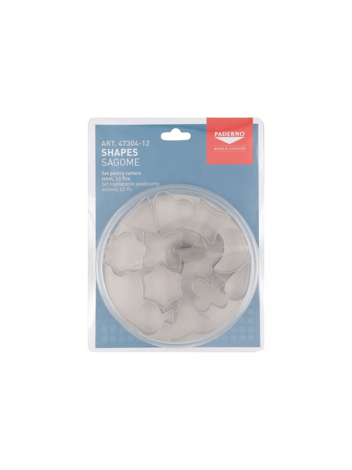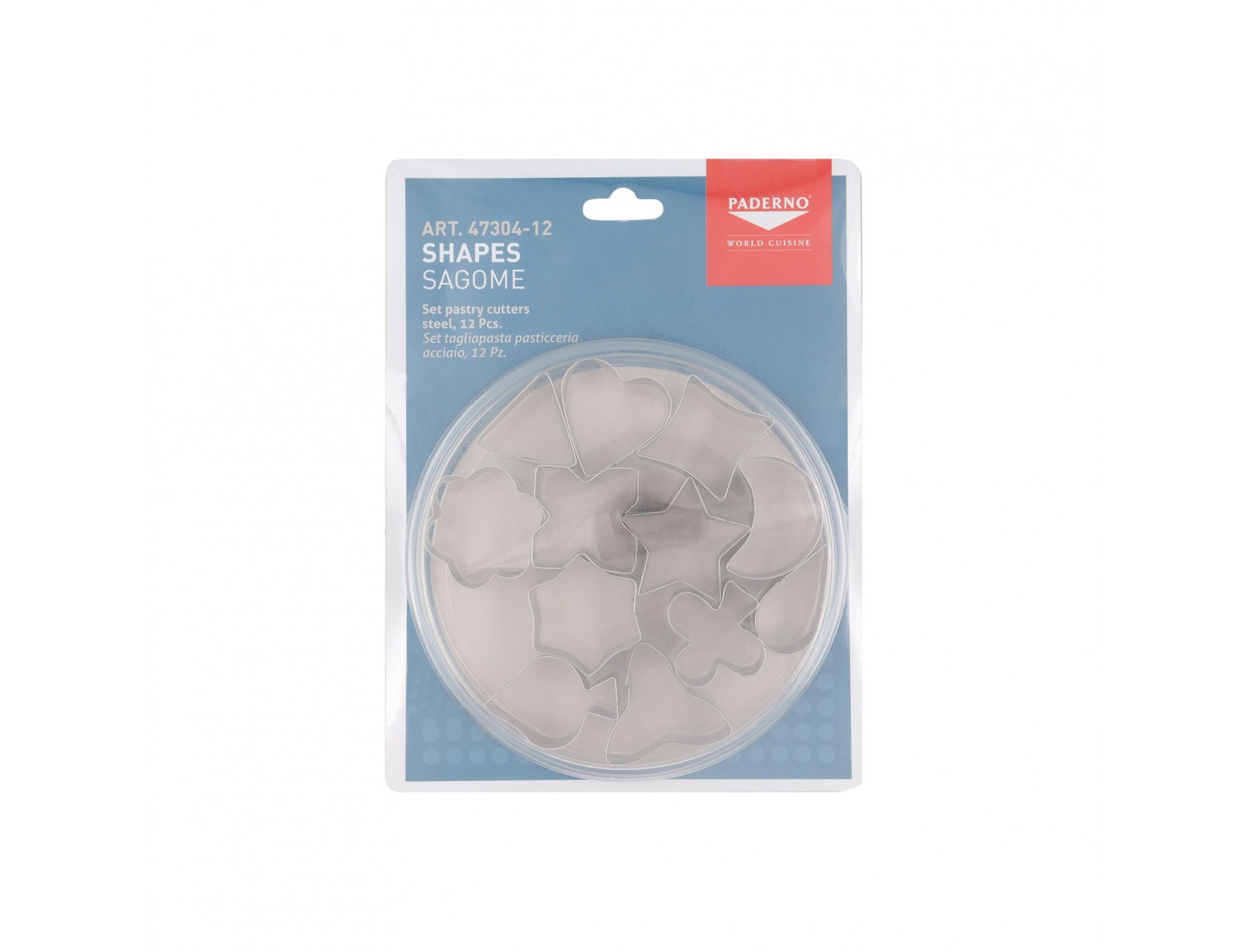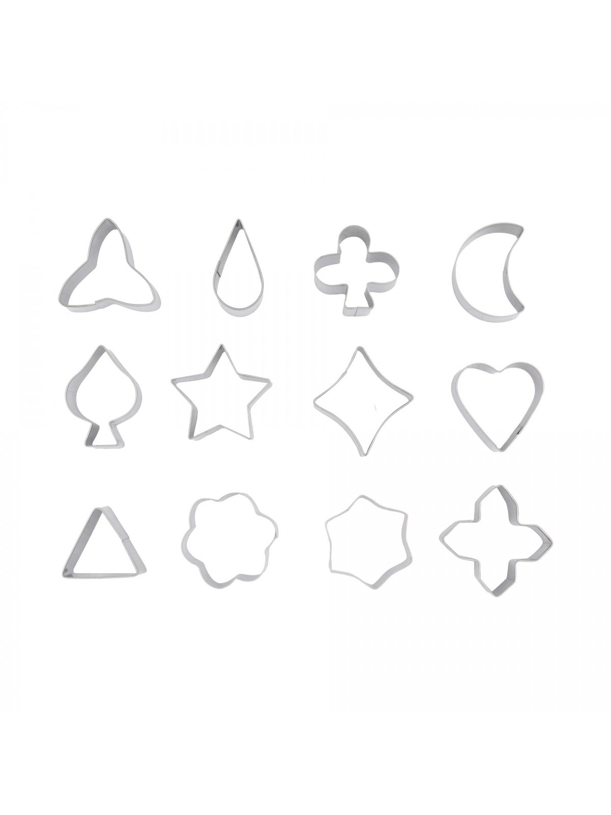 Набор вырубок форм для приготовления пряников и печенья, Фигуры, 3-4 см, 12 штук, нержавеющая сталь, Paderno. (47304-12)