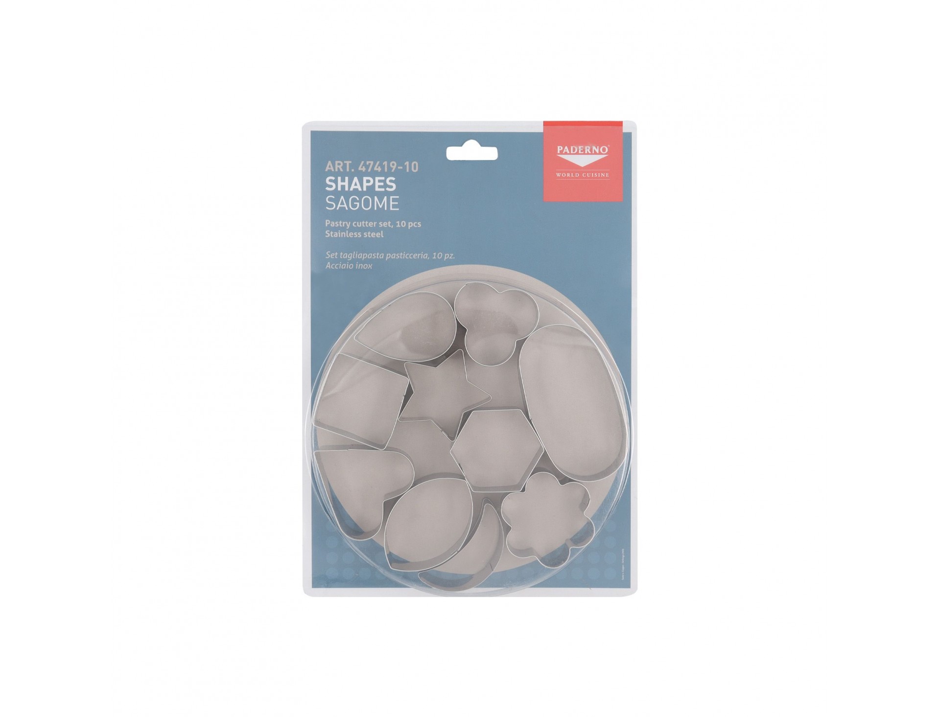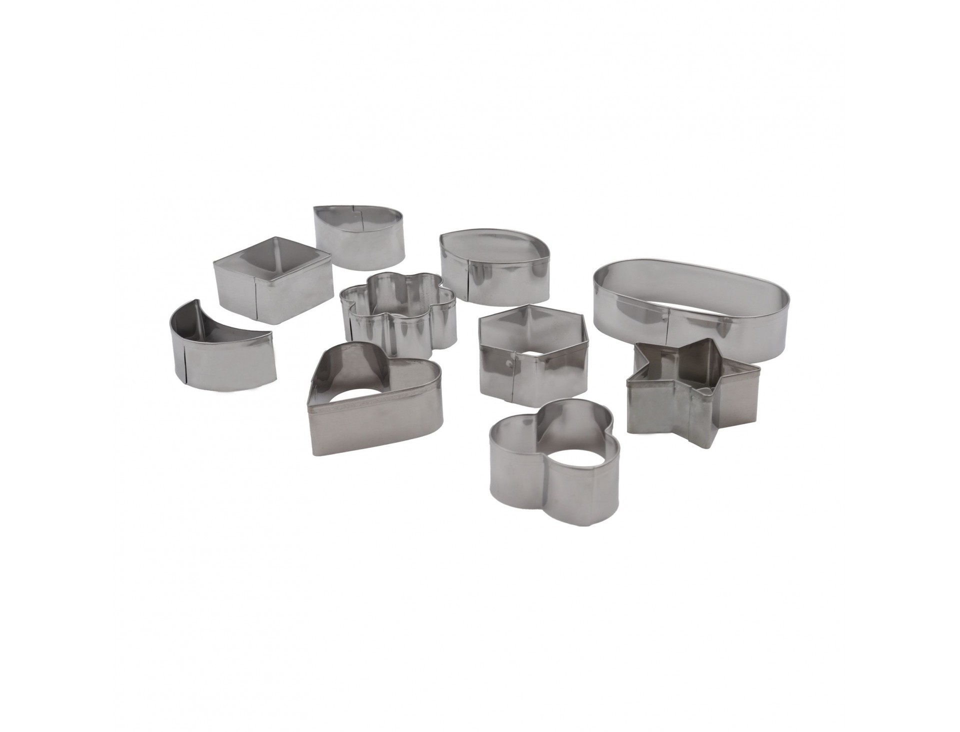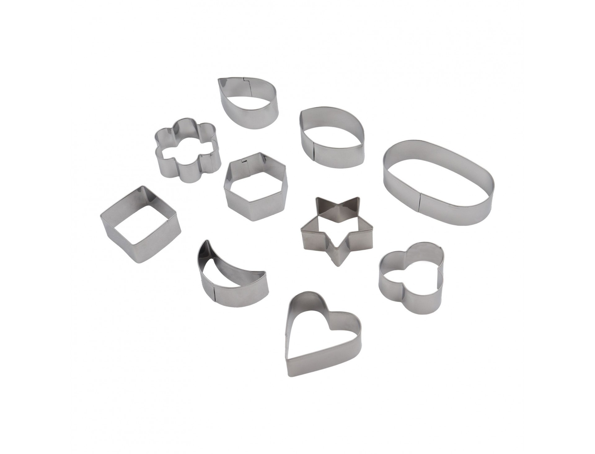 Набор вырубок форм для приготовления пряников и печенья, Фигуры, 10 штук, нержавеющая сталь, Paderno. (47419-10)