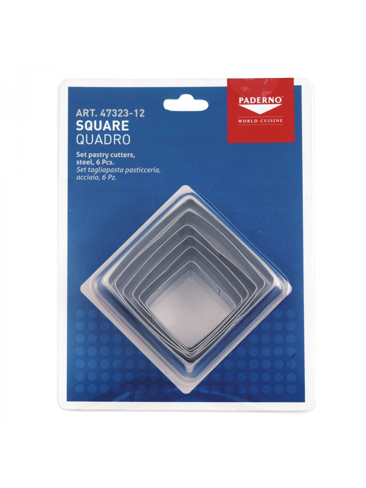 Набор вырубок форм для приготовления пряников и печенья, Квадрат, 3, 5-7 см, 6 штук, нержавеющая сталь, Paderno. (47323-12)