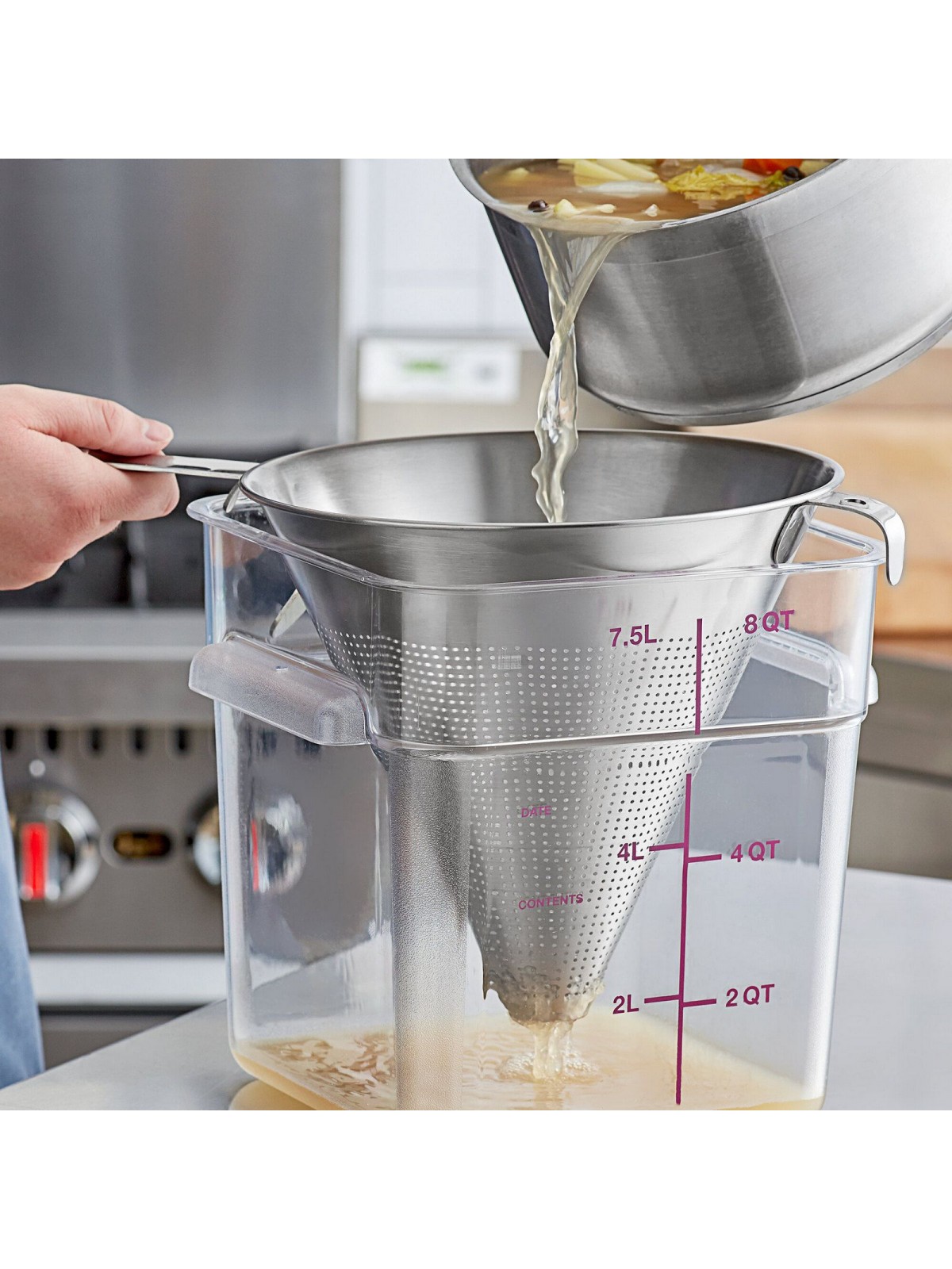 - предназначен для использования на профессиональной кухне ресторана, бара или кафе. Дуршлаг из универсального материала для любых продуктов, за исключением творога (он может окислиться).