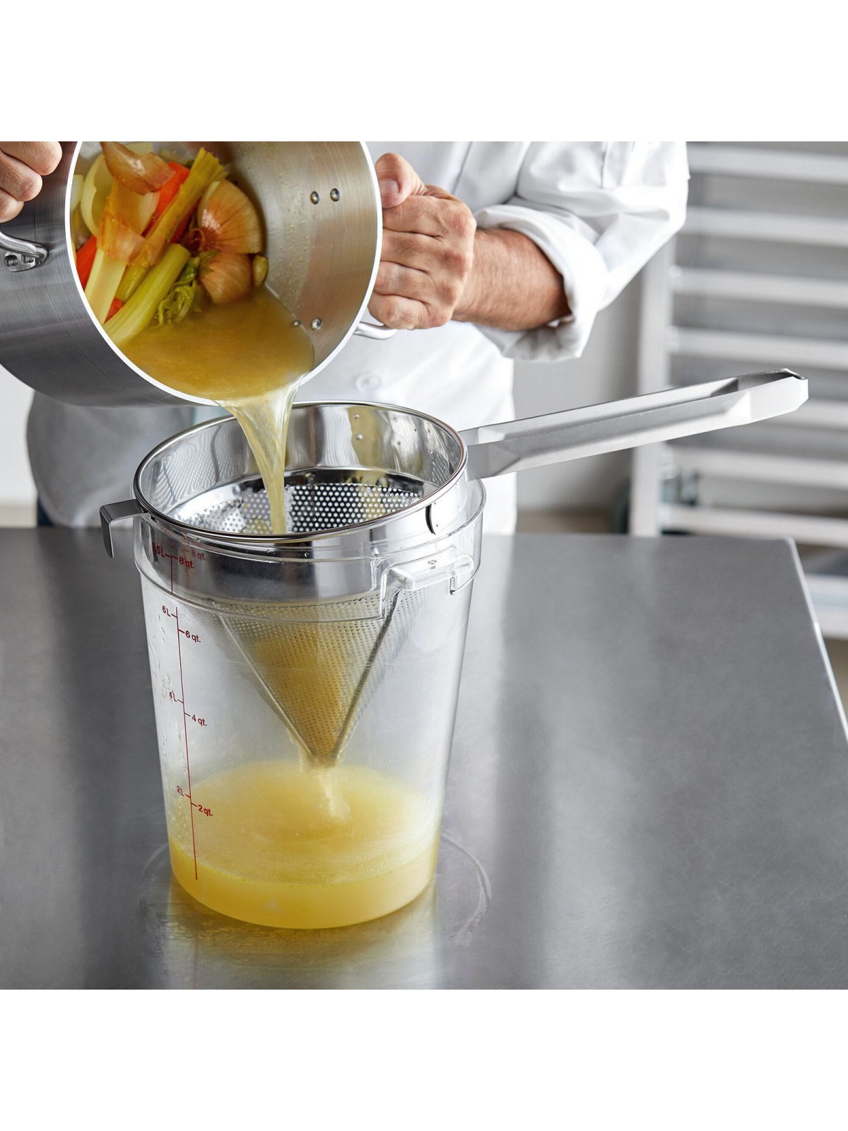- предназначен для использования на профессиональной кухне ресторана, бара или кафе. Дуршлаг из универсального материала для любых продуктов, за исключением творога (он может окислиться).