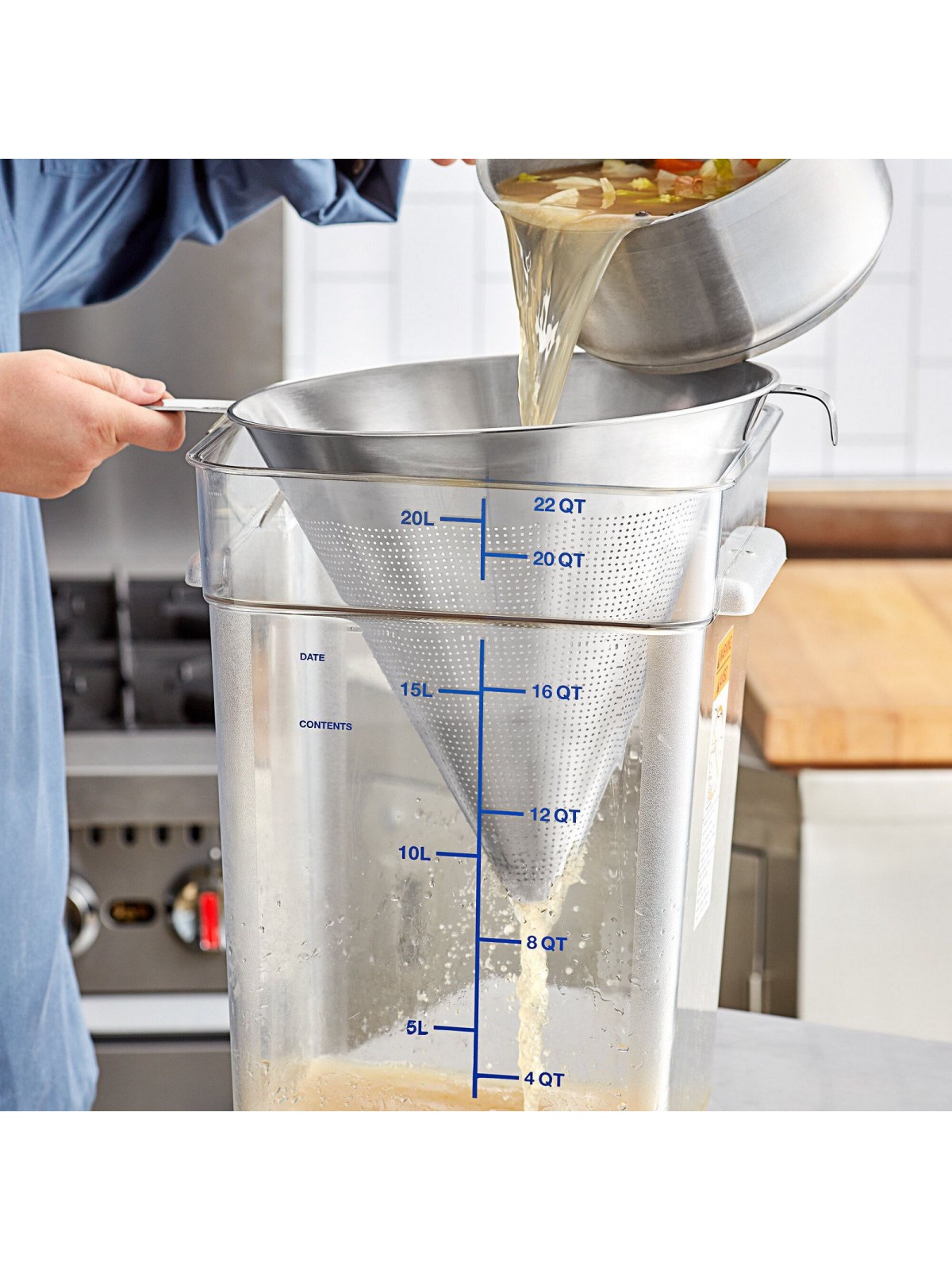 - предназначен для использования на профессиональной кухне ресторана, бара или кафе. Дуршлаг из универсального материала для любых продуктов, за исключением творога (он может окислиться).
