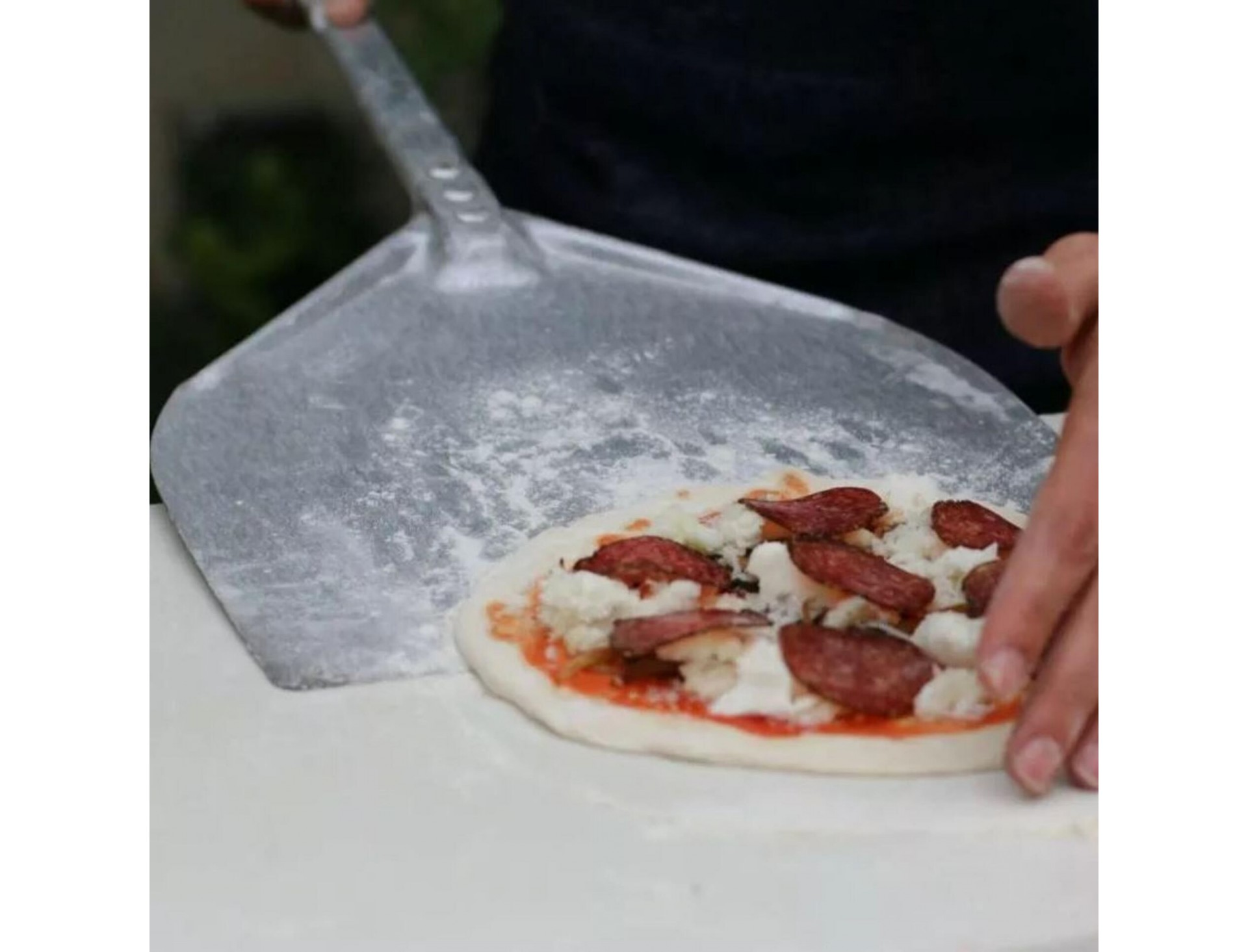 Изготовлена из алюминия. Имеет широкое основание и удобную ручку, что делает этот инструмент незаменимым для пиццайолло.