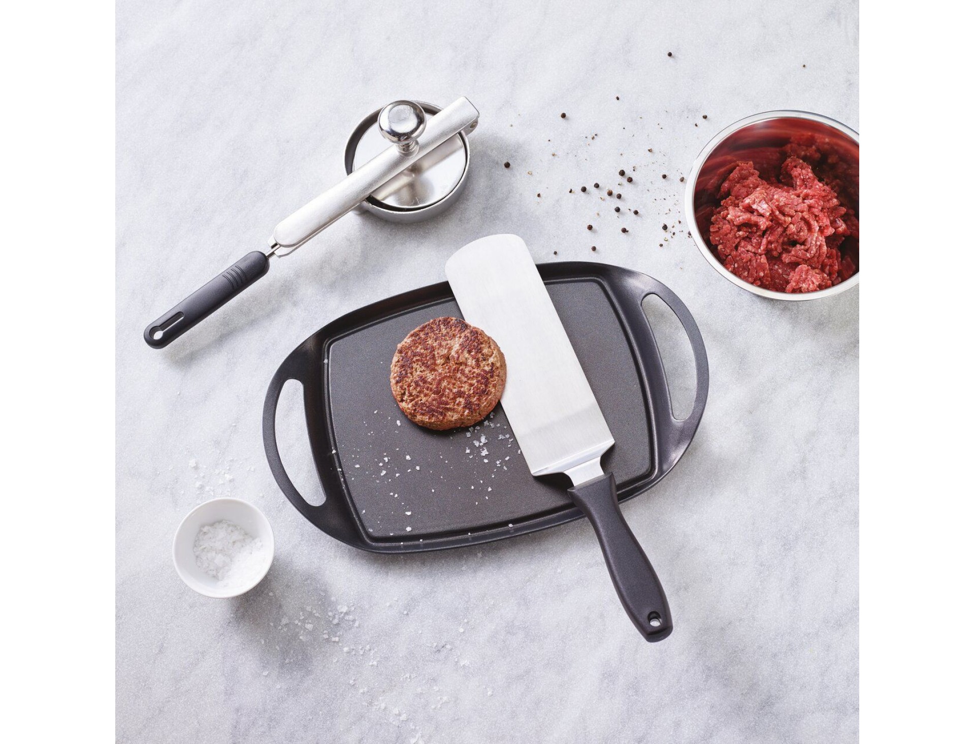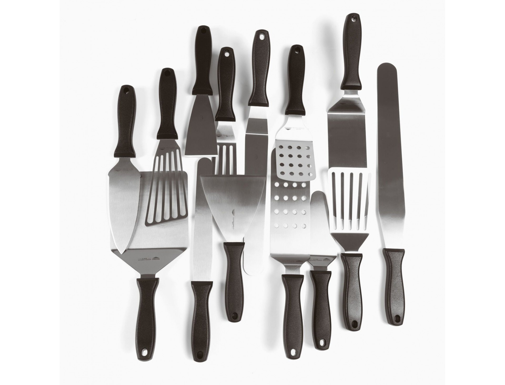 Лопатка для гамбургеров, металлическая, рабочая поверхность 24х7, 2 см, общая L-34 см, пластиковая ручка, Paderno. (18516-24)