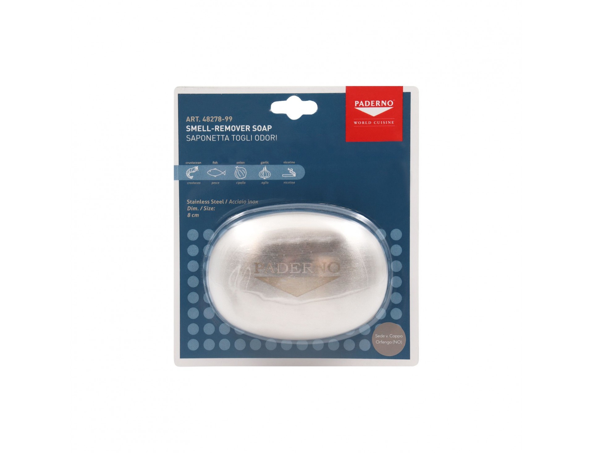 Мыло металлическое для удаления запаха, 7, 5х5, 5 см, нержавеющая сталь, Paderno. (48278-99)