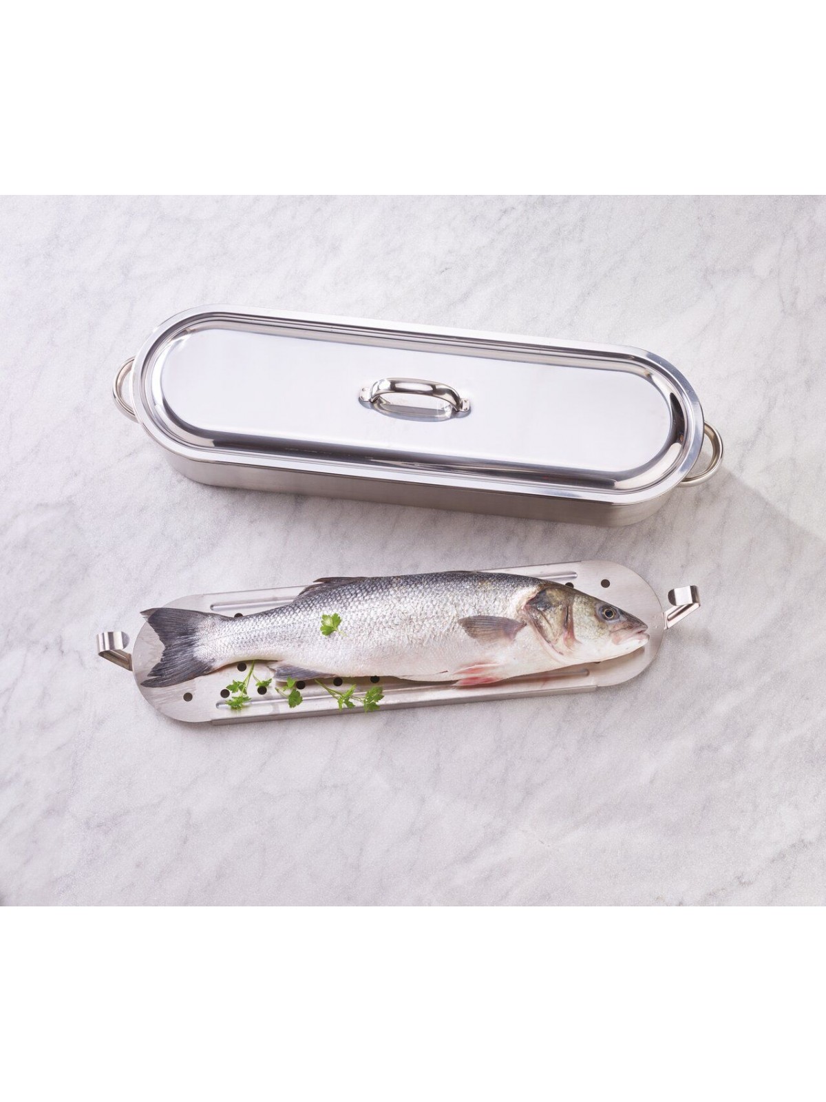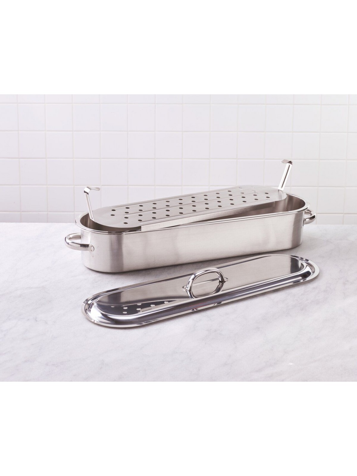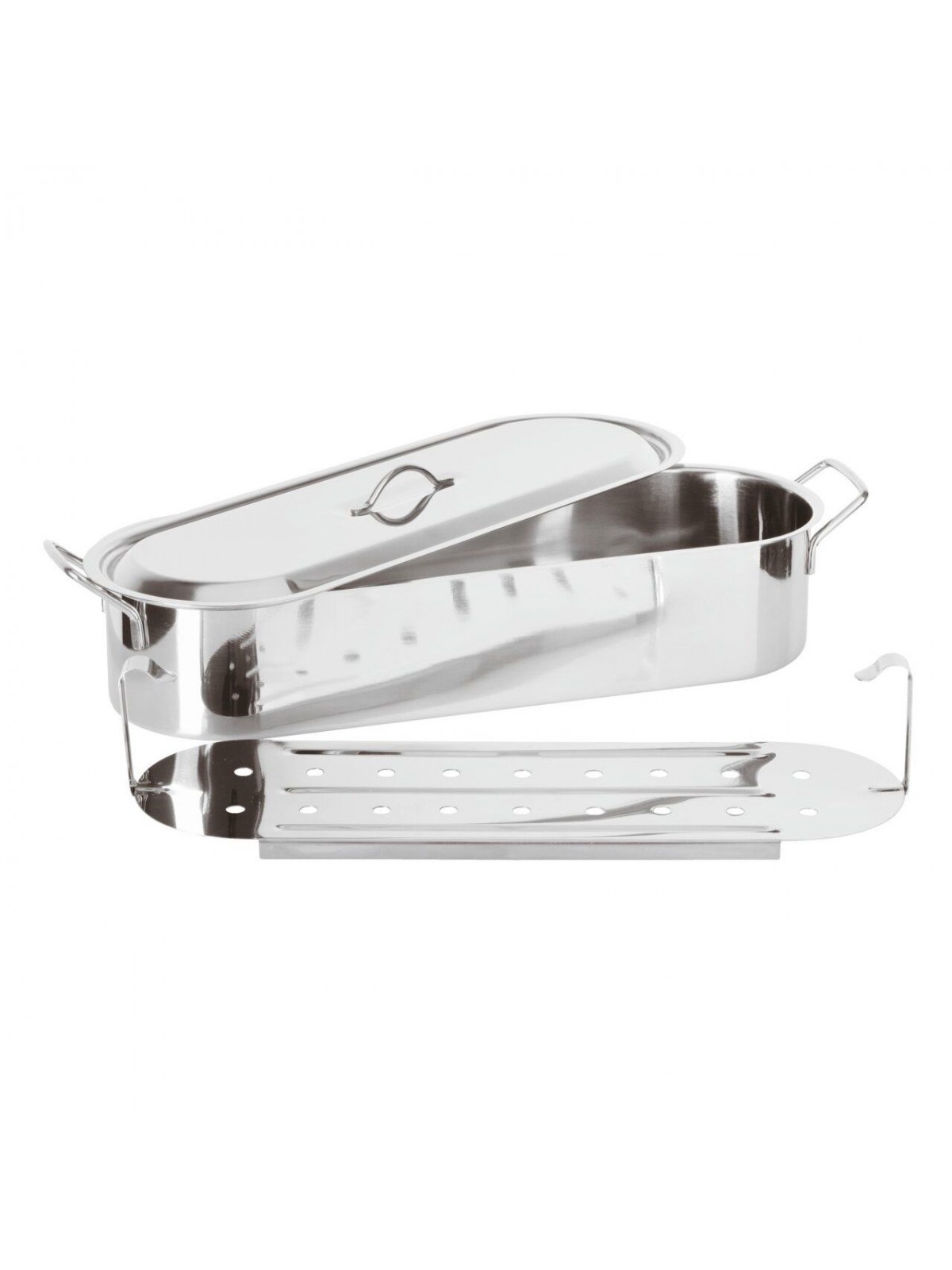 Котел для рыбы с паровой вставкой и крышкой, 46х15, 5х10, 5 см, нержавеющая сталь, Paderno. (41964-45)
