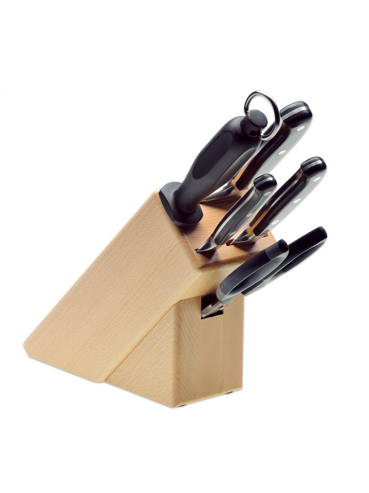 Купить набор ножей ручка термоэластопласт из 5 позиций на подставке, вы сможете оформив заказ в нашем интернет-магазине ножей для профессиональной кухни.