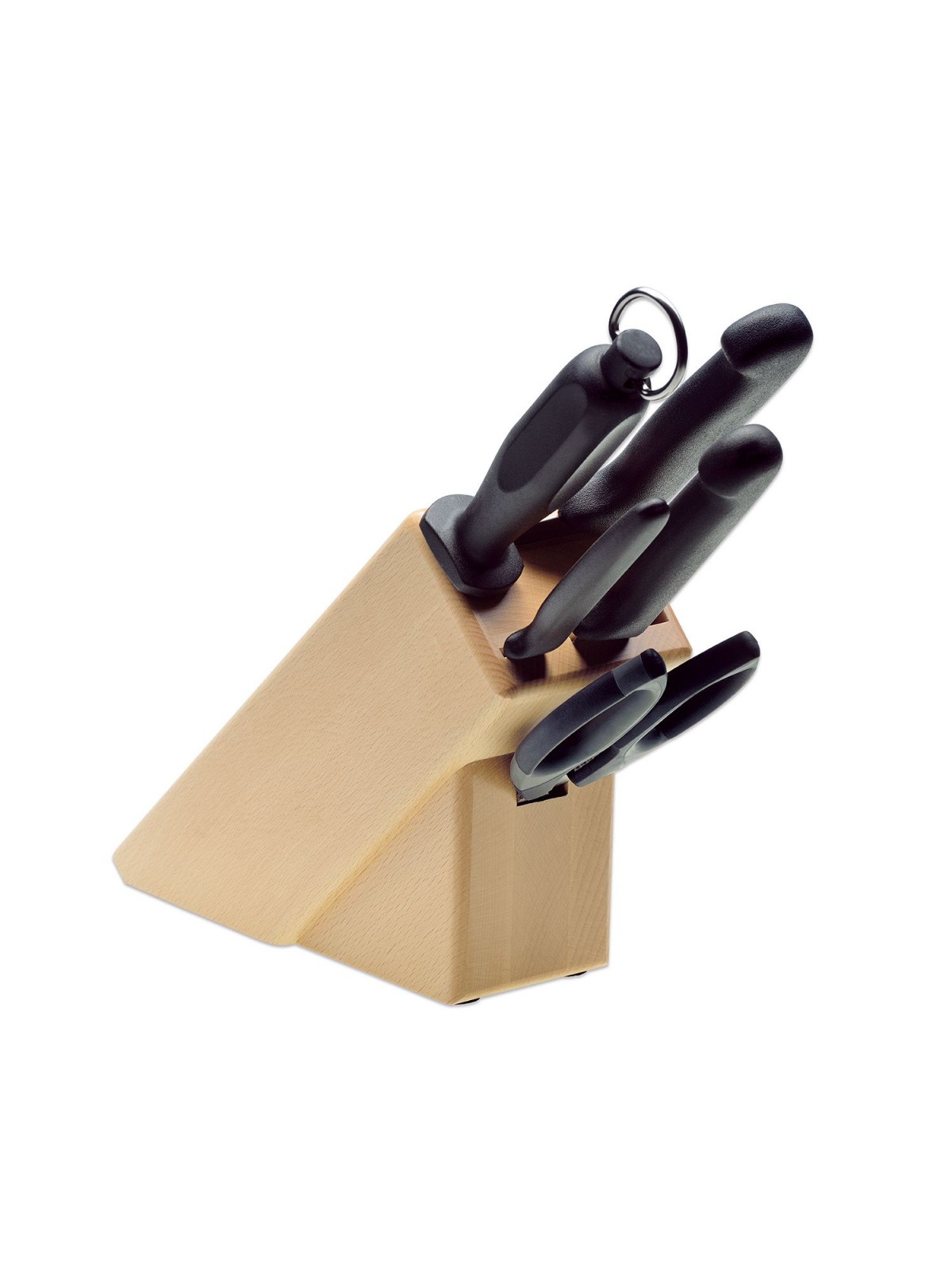 Купить набор ножей ручка термоэластопласт из 5 позиций на подставке, вы сможете оформив заказ в нашем интернет-магазине ножей для профессиональной кухни.