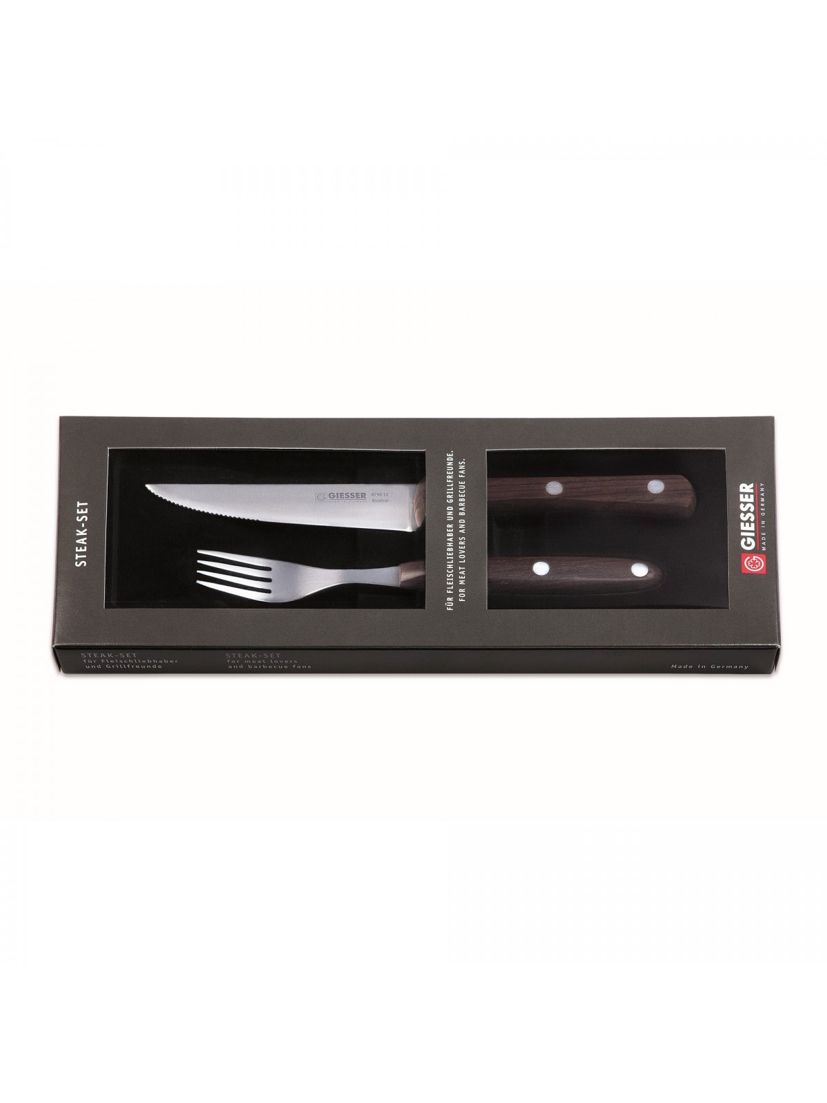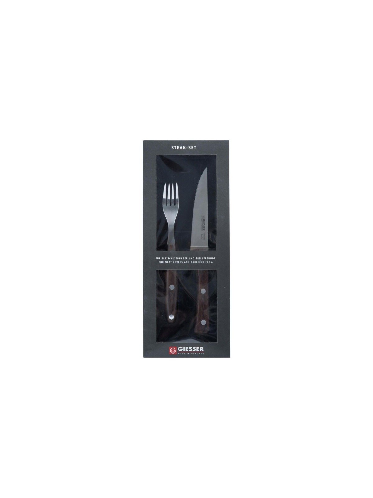 Набор кухонный поварской профессиональный: стейковый нож и стековая вилка, ручка из палисандрового дерева, Giesser. (9750-2)