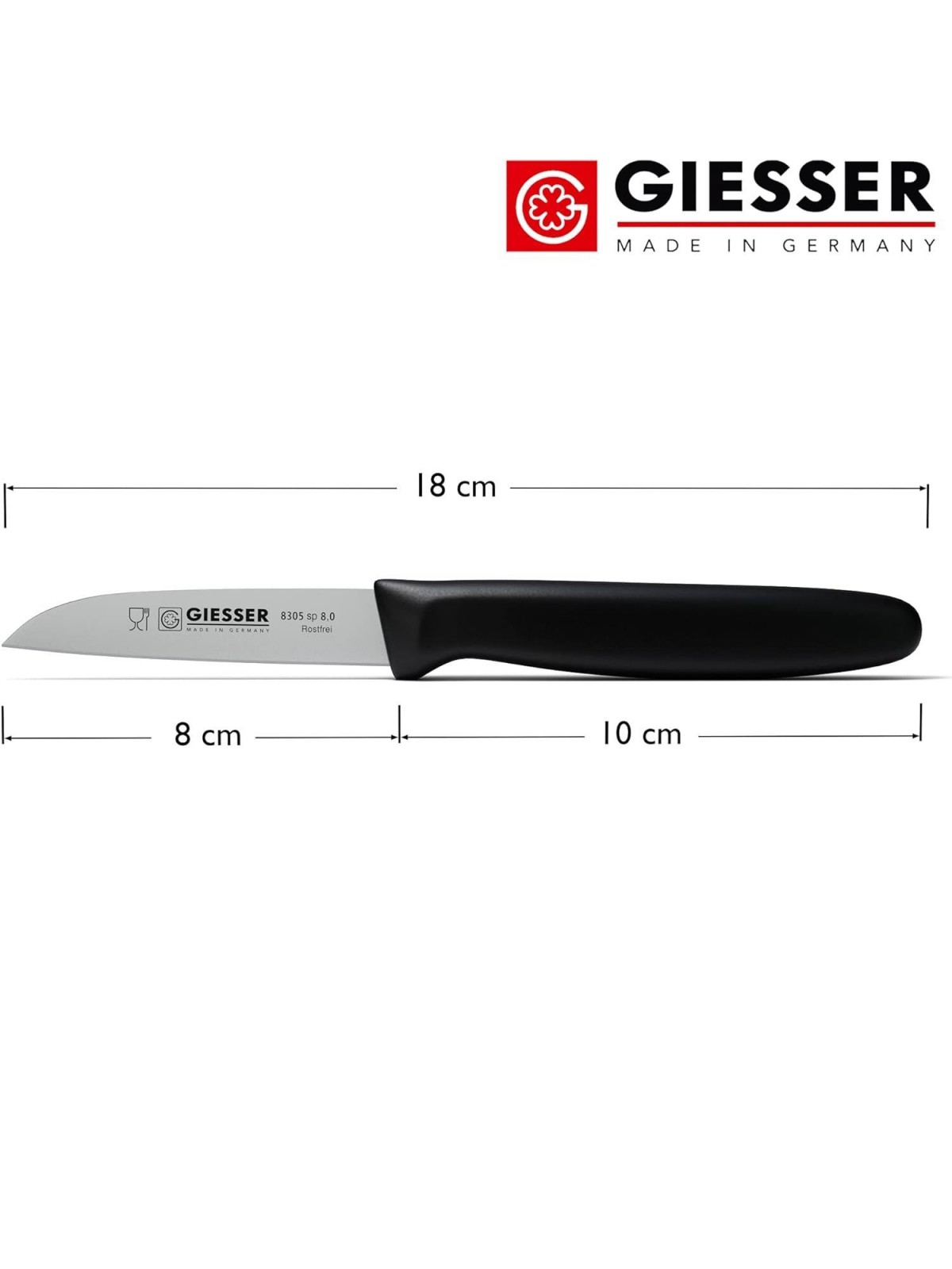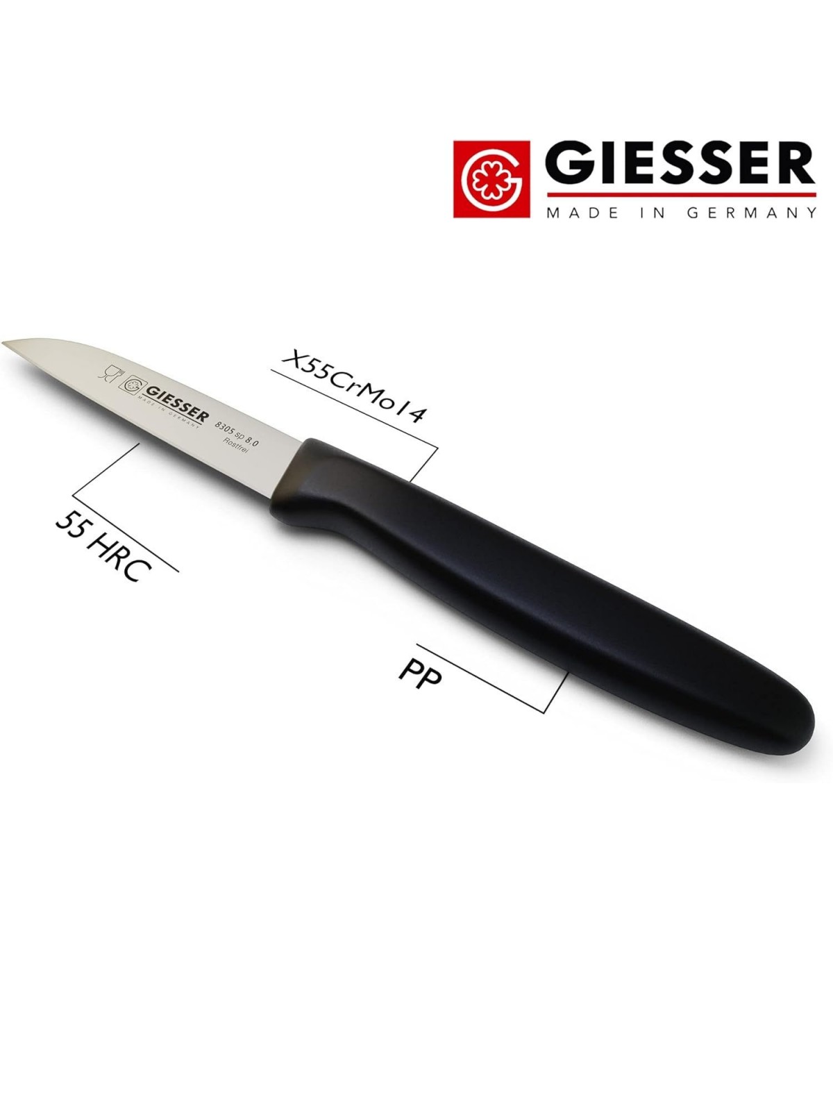 Нож кухонный профессиональный 8 см, для чистки и нарезки овощей и фруктов, ручка пп, Giesser. (8305 sp 8, 0)