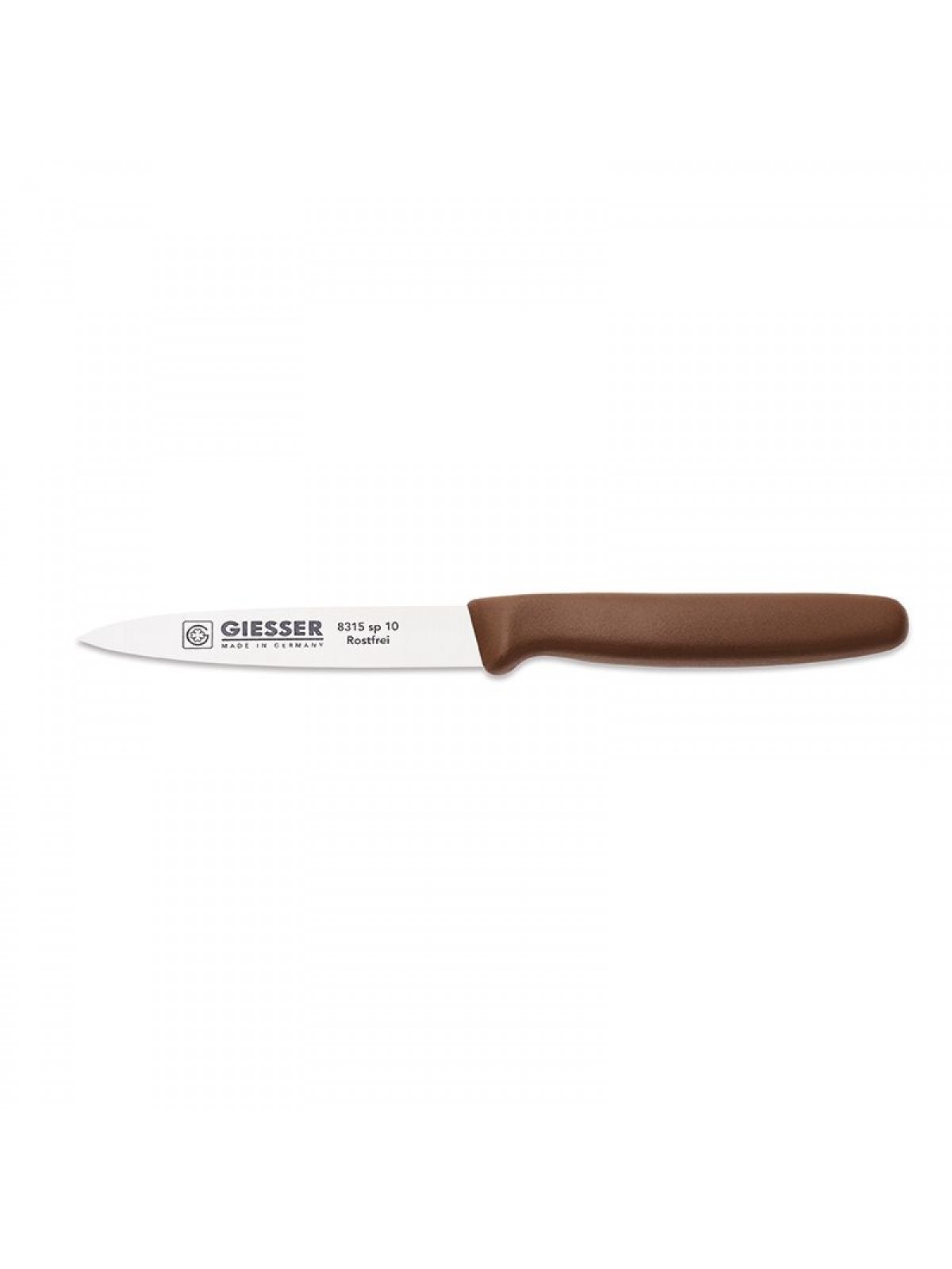 Нож кухонный профессиональный 10 см, для чистки и фигурной нарезки овощей и фруктов, коричневая ручка п/п, Giesser. (8315 sp 10 br)