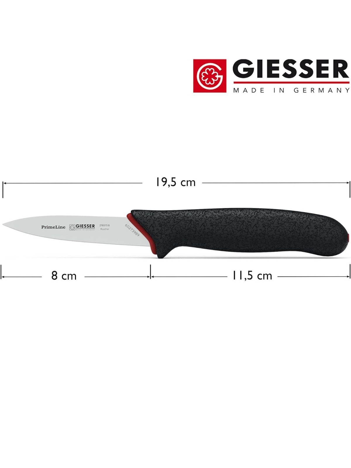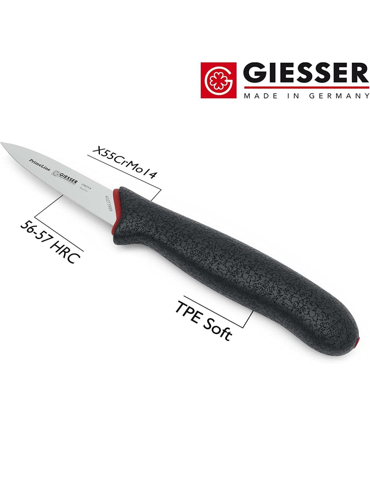 Нож кухонный профессиональный, 8 см, для чистки и фигурной нарезки овощей и фруктов, ручка PrimeLine, Giesser. (218315 8)