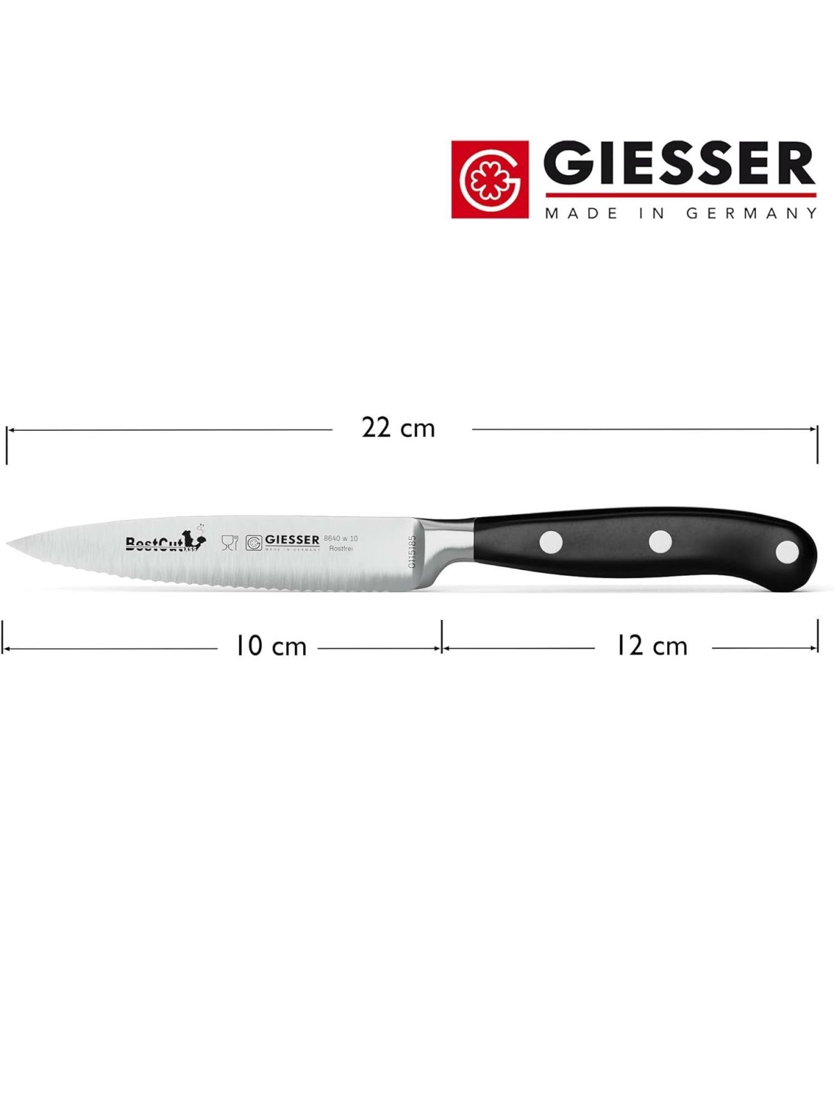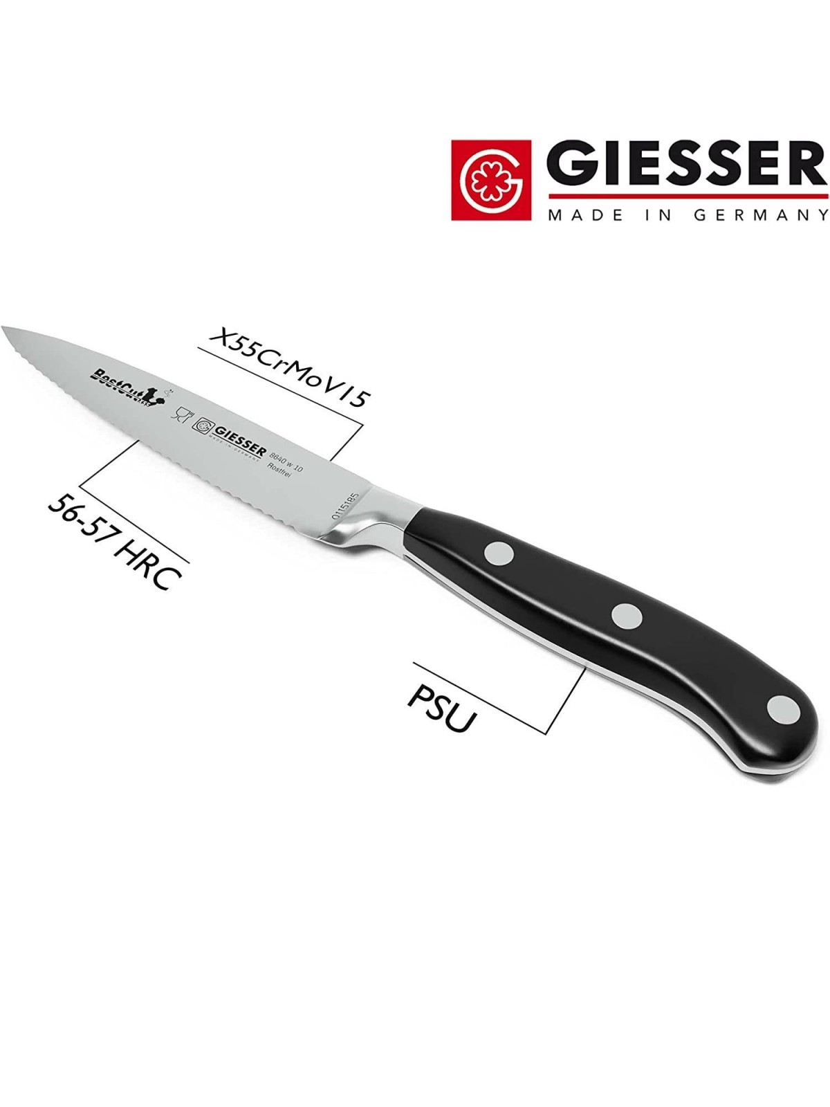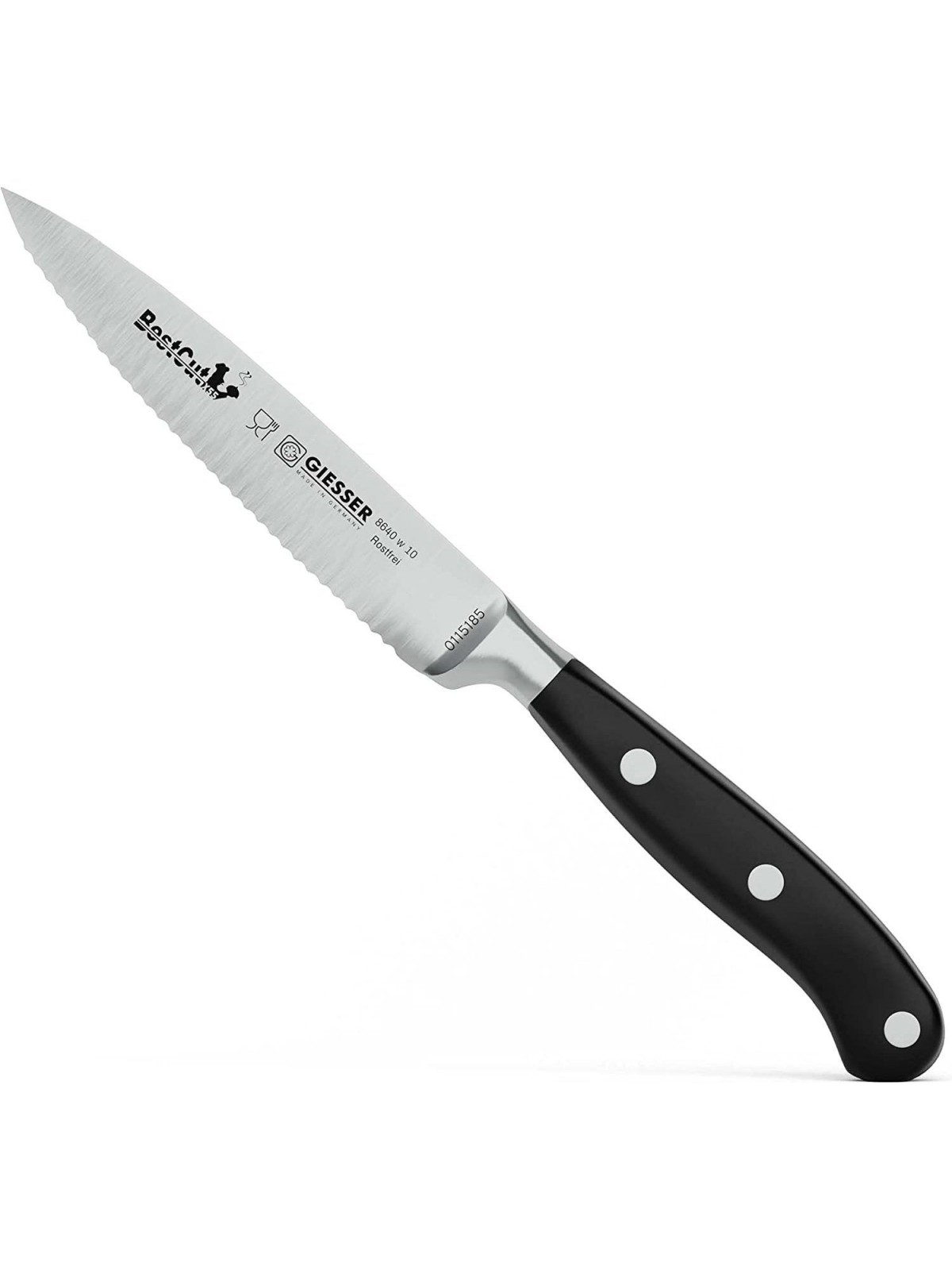 Нож кухонный BestCutx55 кованый профессиональный с волнистым лезвием, 10 см, для чистки и нарезки овощей и фруктов, черная ручка PSU, Giesser. (8640 w 10)