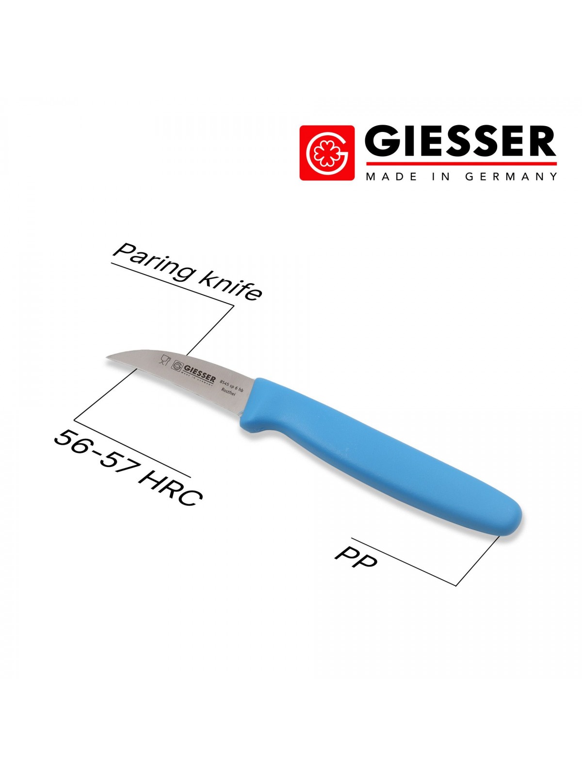 Профессиональный поварской нож для карвинга - нож коготь, 6 см, ручка пп синяя, Giesser. (8545 sp 6 hb)