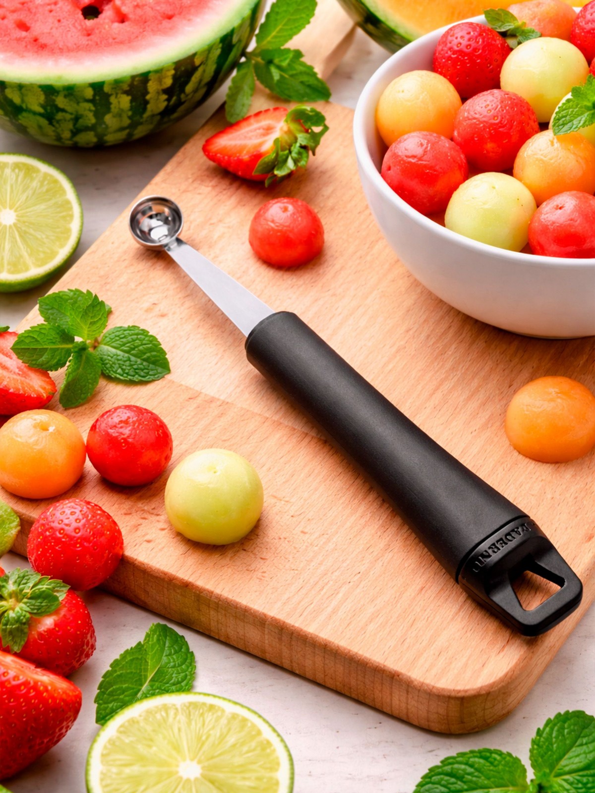 - (нуазетка, нож-нуазетка, ложка для фруктовых шаров) используется на кухнях различных заведений общепита. Ускоряет и облегчает работу повара с фруктами.