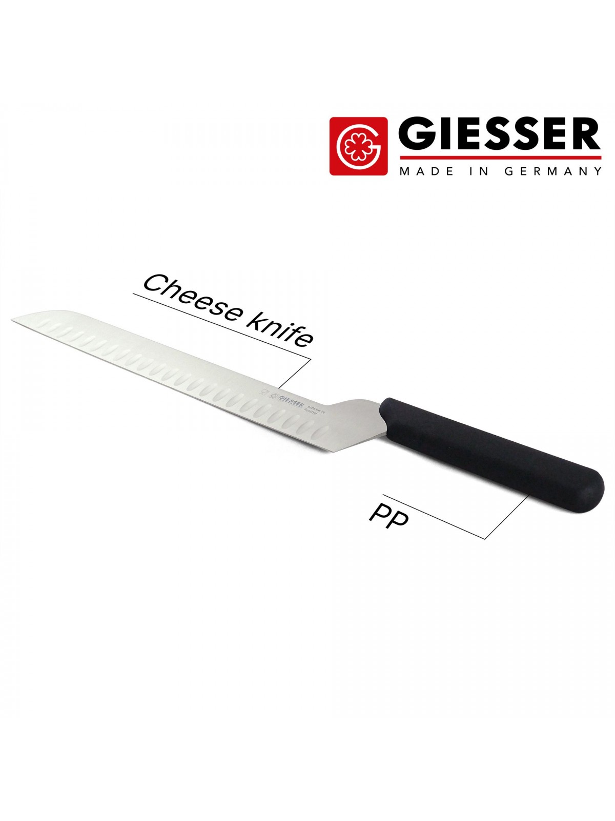 Профессиональный нож для резки сыра, 26 см, лезвие с желобками, ручка TPE, Giesser. (9605 ww 26)