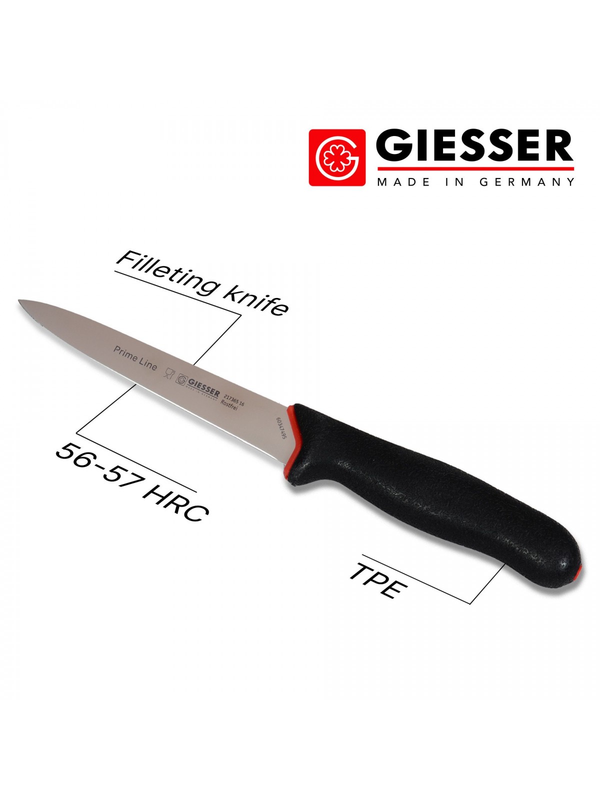 Нож филейный профессиональный 16 см, для разделки рыбы, ручка PrimeLine, Giesser. (217365 16)