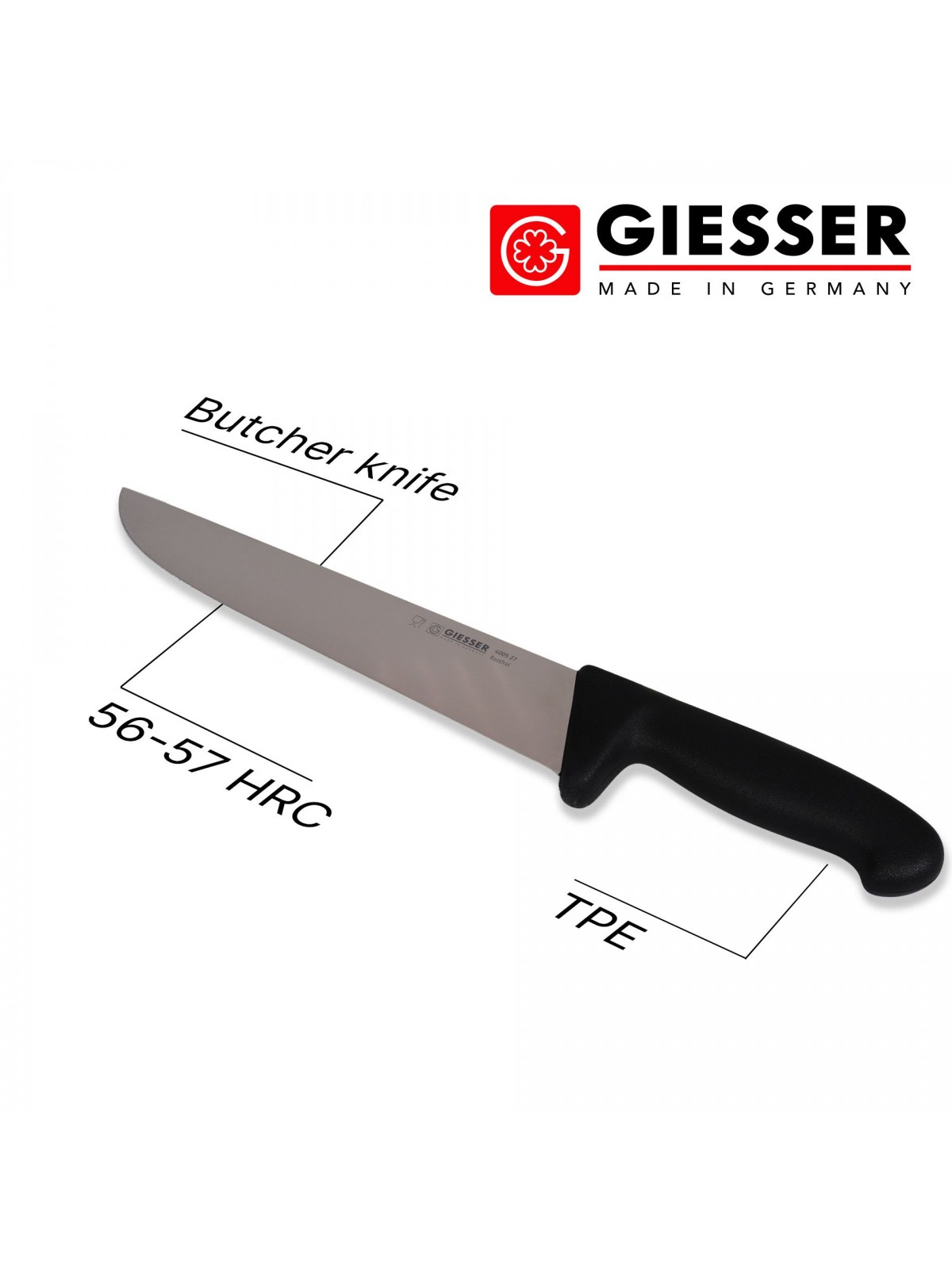 Нож обвалочный профессиональный 27 см, для обвалки и разделки мяса, ручка TPE, Giesser. (4005 27)