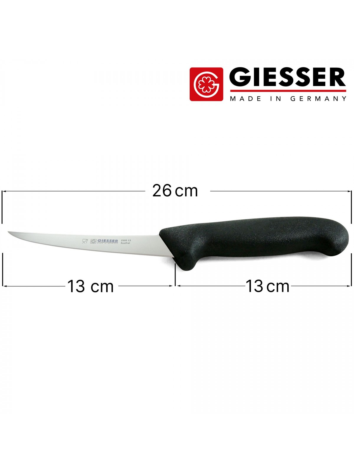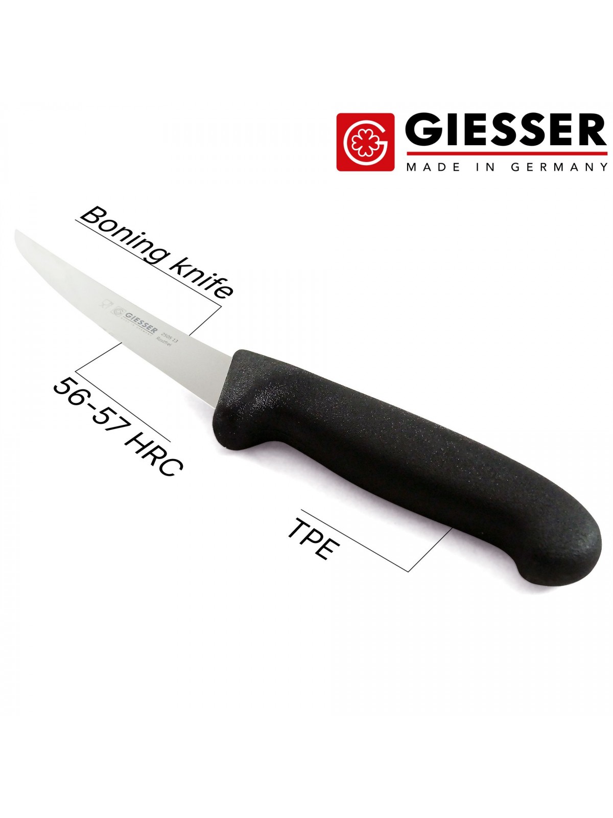 Нож обвалочный профессиональный 13 см, средняя жесткость, для обвалки и разделки мяса, ручка TPE, Giesser. (2505 13)