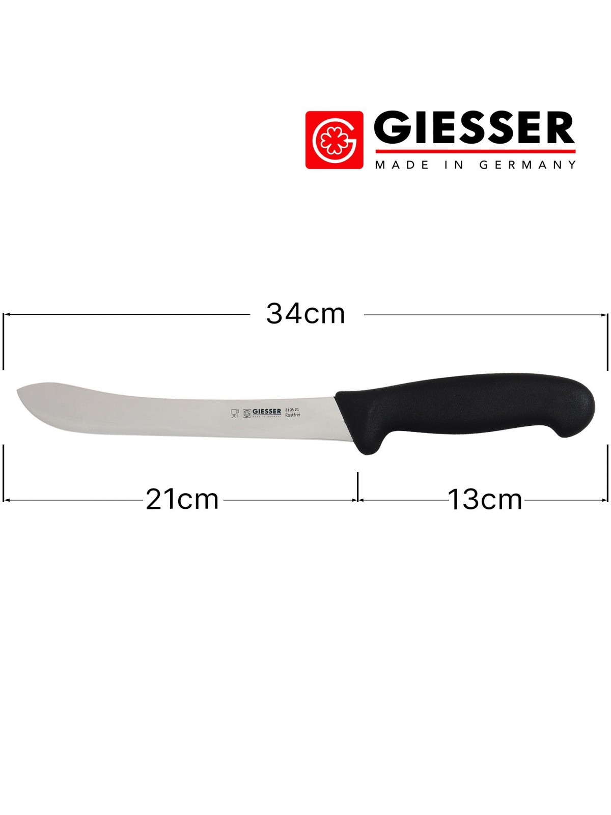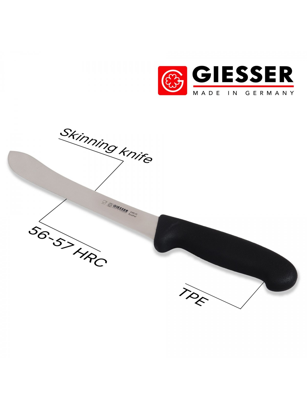 Нож профессиональный разделочный, шкуросъемный, 21 см, ручка TPE черная, Giesser. (2105 21)
