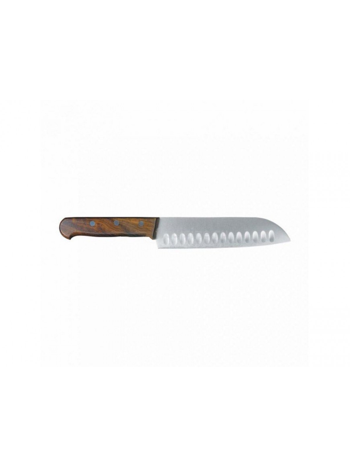 - универсальный нож шеф-повара, подходит практически для всех видов кухонных работ. Улучшеный процесс резки за счет воздушных пузырьков между лезвием и продуктом. Классическая форма лезвия Santoku.