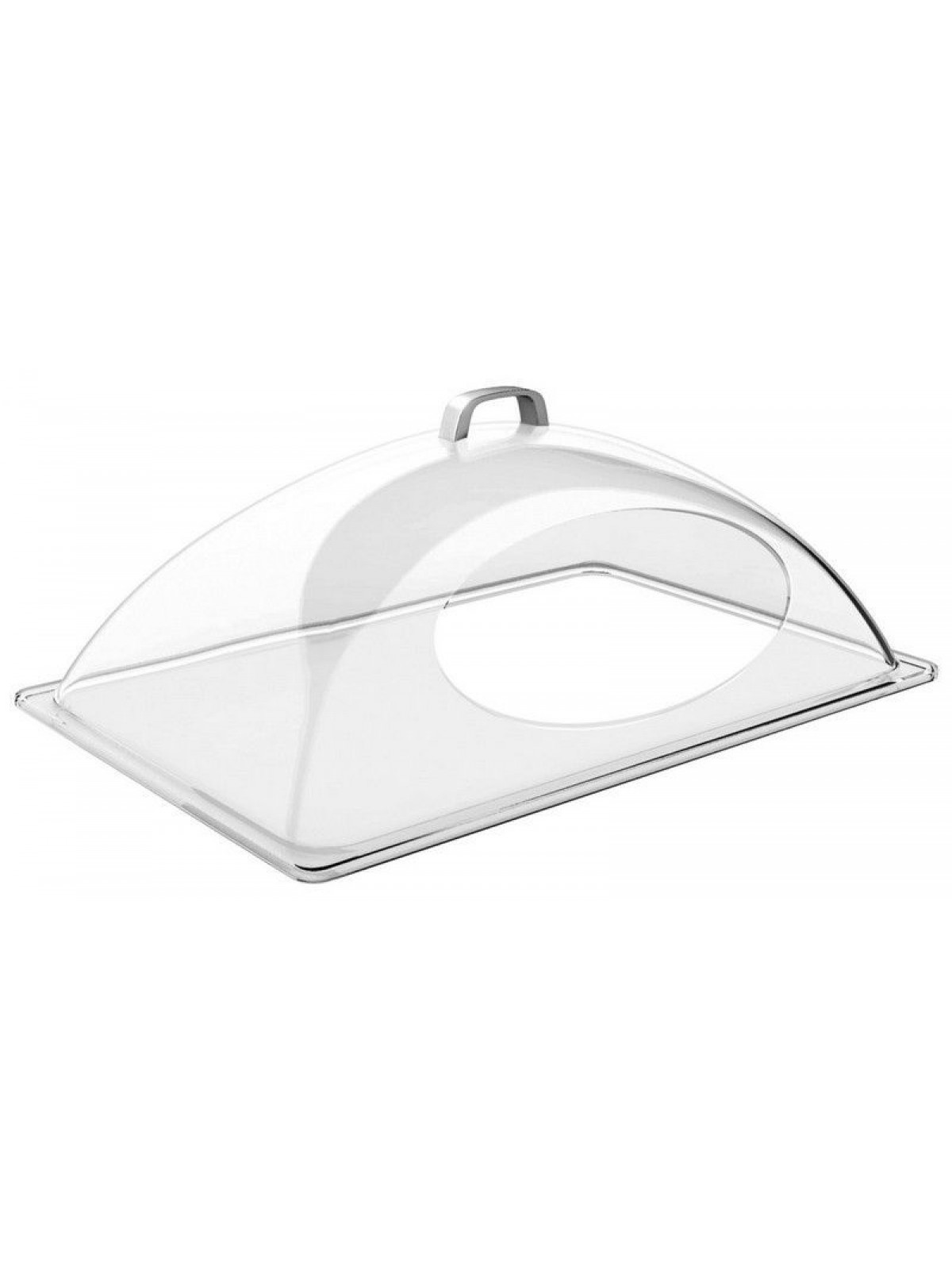 Крышка пластиковая для гастроемкости, корзины, 54х33х20 см (1/1), с отверстием, прозрачная, Paderno. (41418-11)