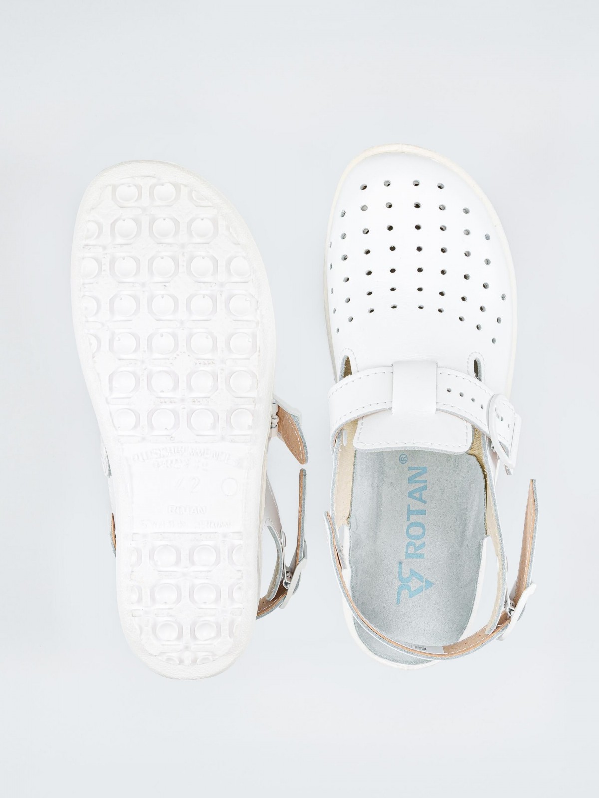 Сабо унисекс с перфорацией, верх натуральная кожа, белые, размер 39, Rotan. (1860-39)