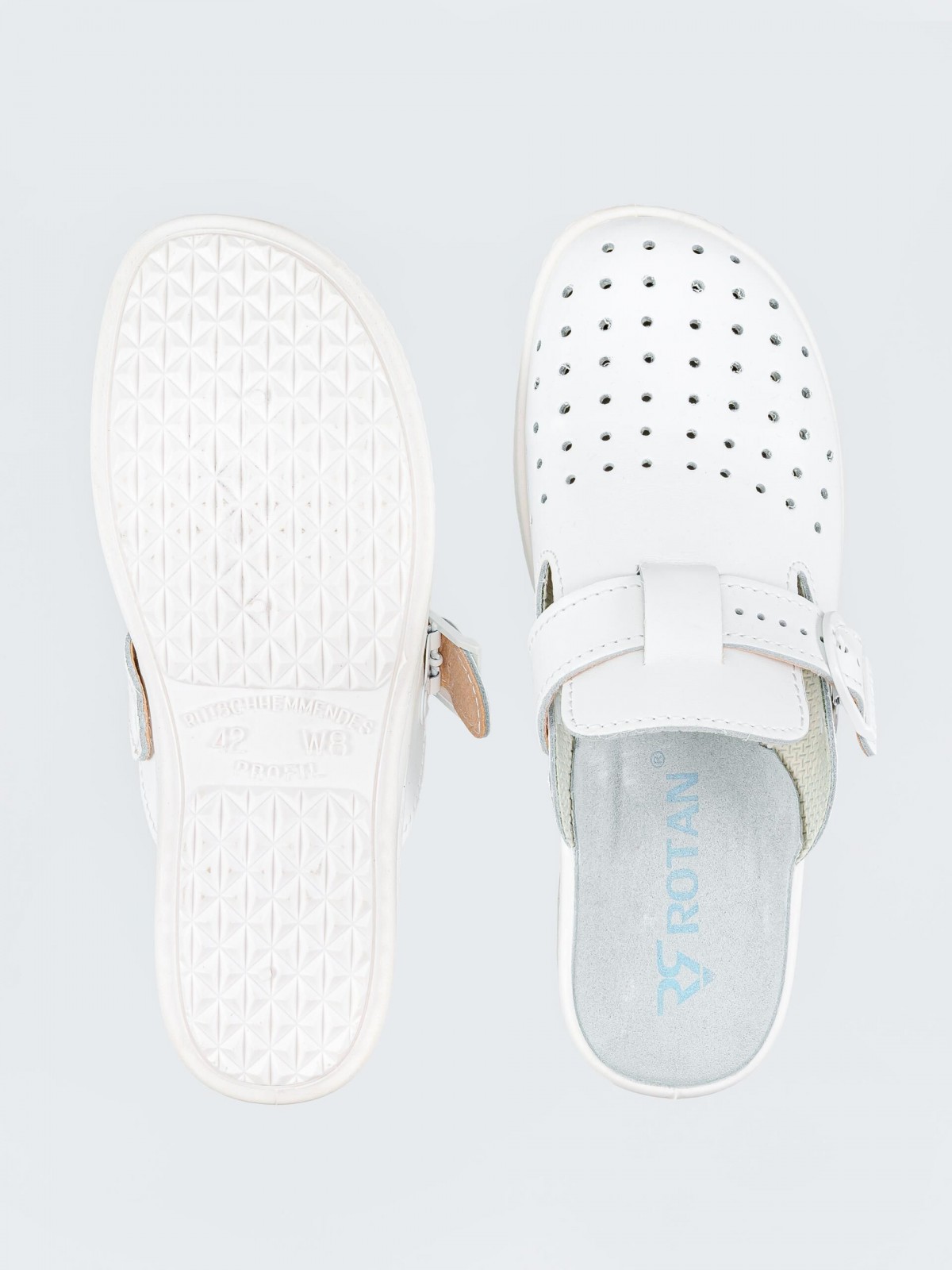 Сабо унисекс с перфорацией, верх натуральная кожа, белые, размер 44, Rotan. (1960-44)