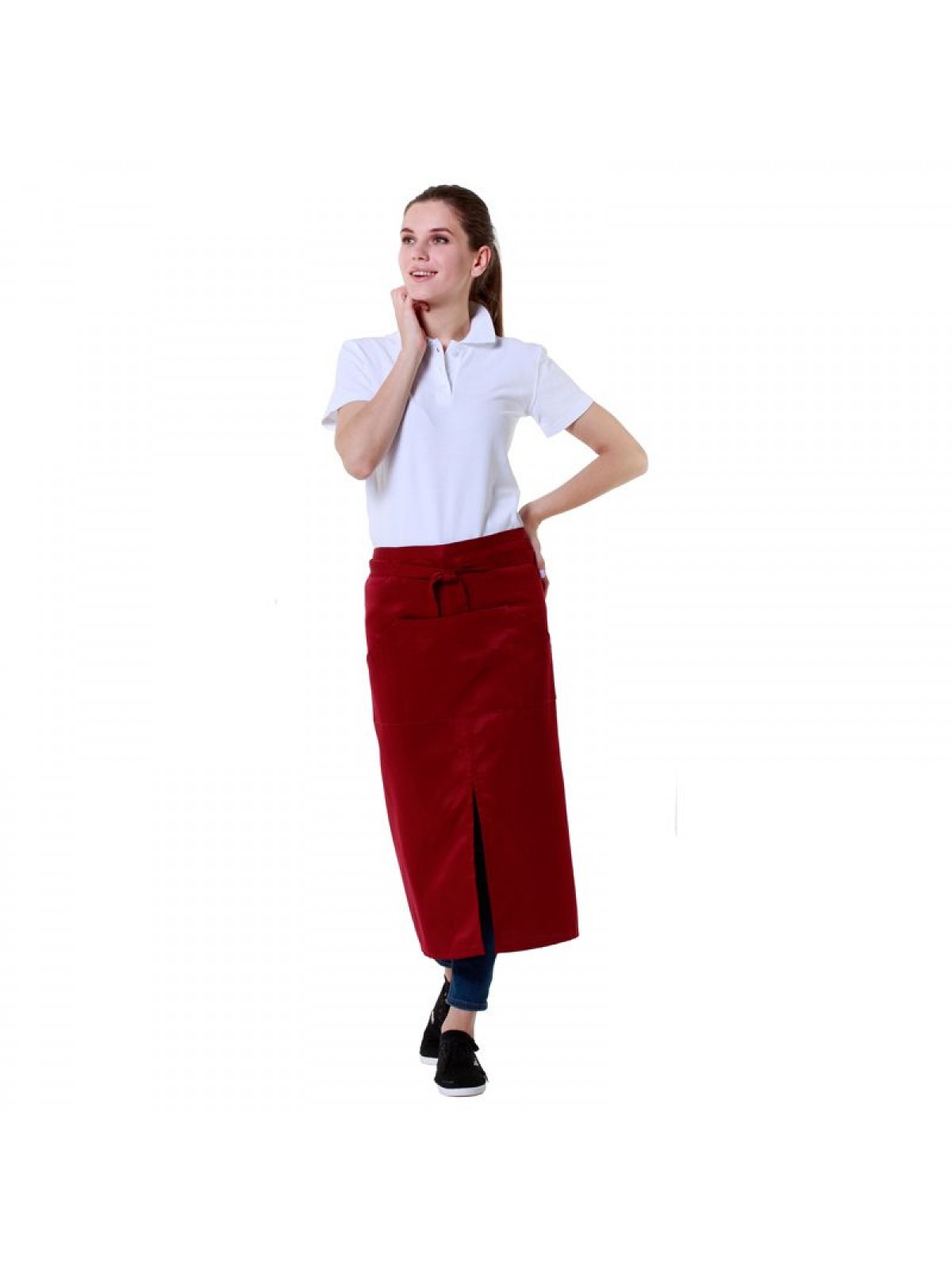 Фартук официанта длинный бордовый, 80х110 см, 65% полиэстер, 35% хлопок. (20-502)