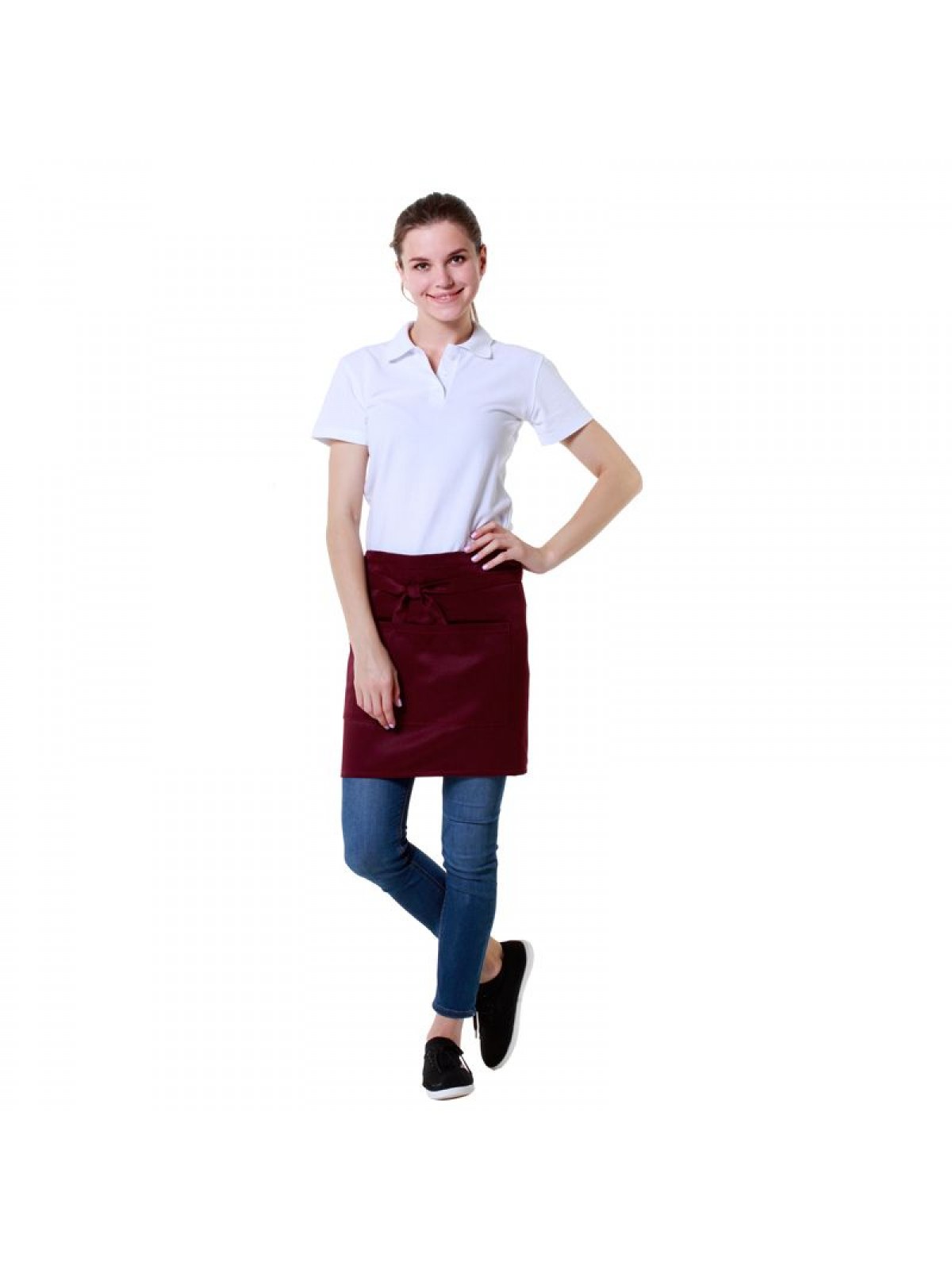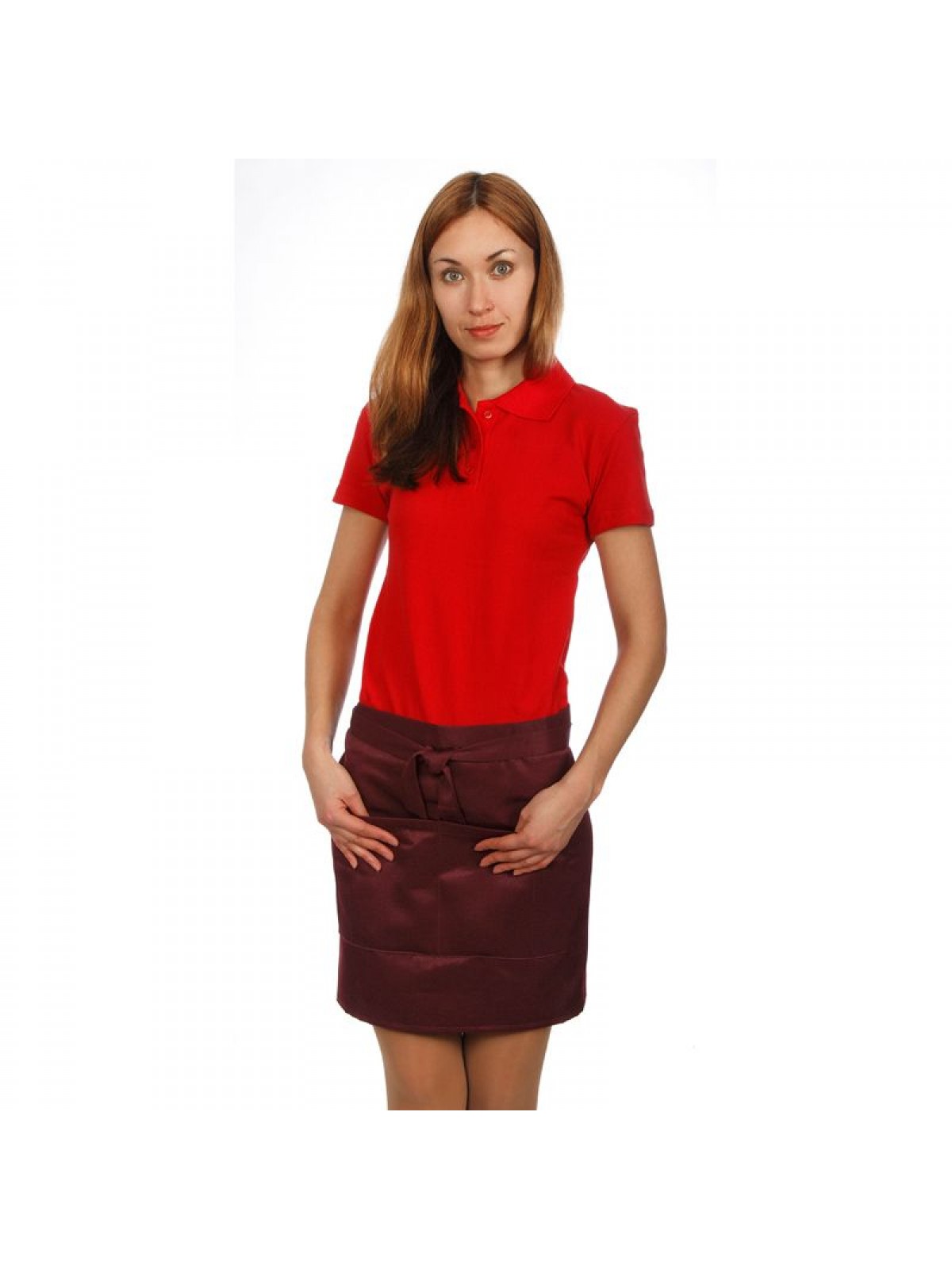Фартук официанта короткий бордовый, 43х100 см, 65% полиэстер, 35% хлопок. (20-0502)