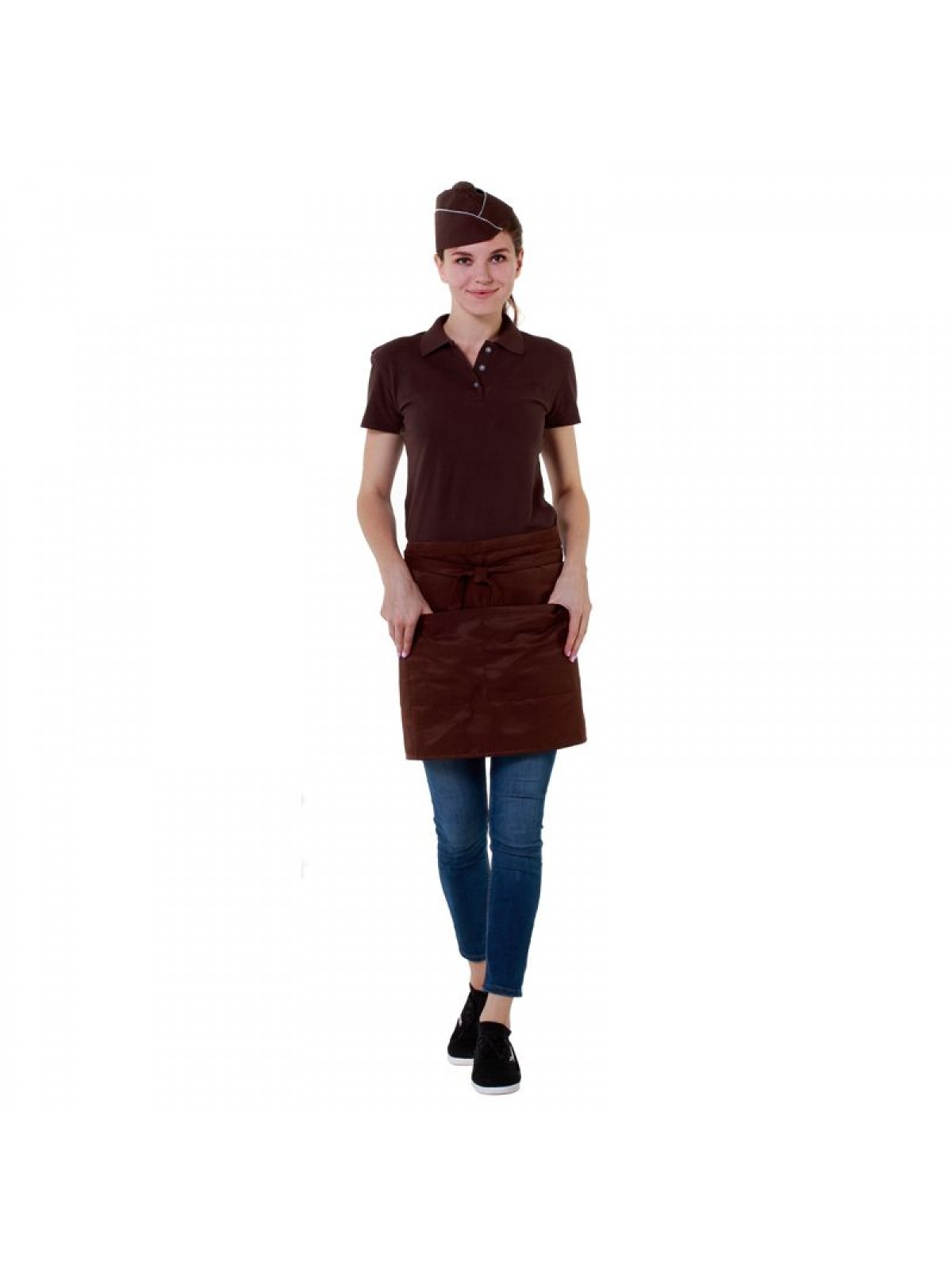 Фартук официанта короткий коричневый, 43х100 см, 65% полиэстер, 35% хлопок. (20-096)