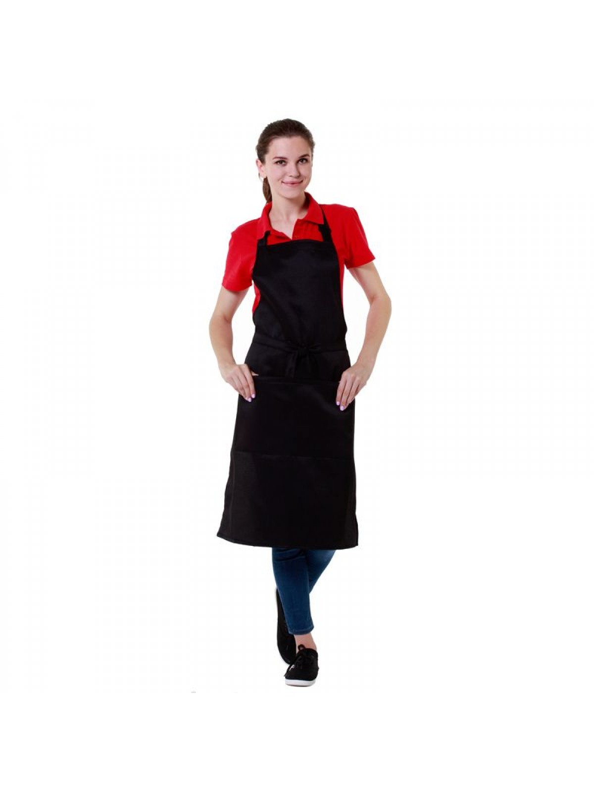 Фартук поварской черный, 90х67 см, 65% полиэстер, 35% хлопок. (20-401)