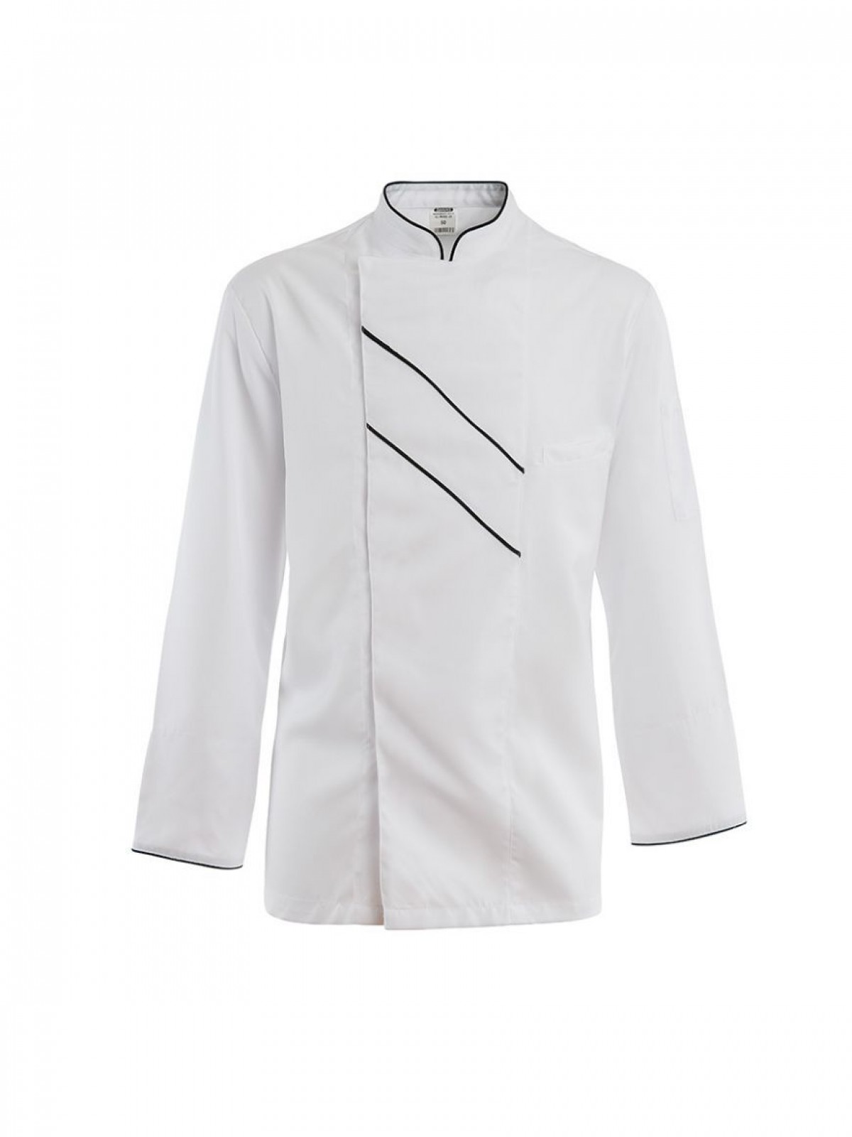 Китель поварской, длинный рукав, на кнопках, 65% полиэстер, 35% хлопок, 200 gsm, белый с черной отделкой, размер 52, ISMONT. (01 M032-12-52)